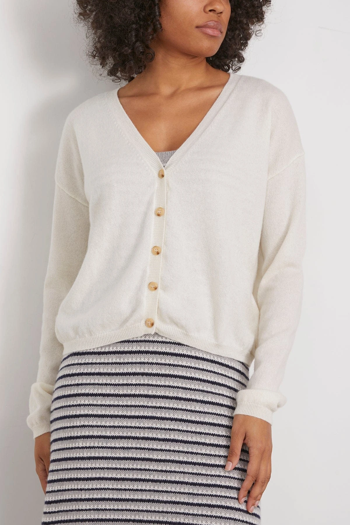 The Lisa Yang Abby Cardigan is a piece you’ll have for years to come. This lightweight cardigan features a boxy silhouette with a classic v-neckline. Wear yours with trousers and boots.
