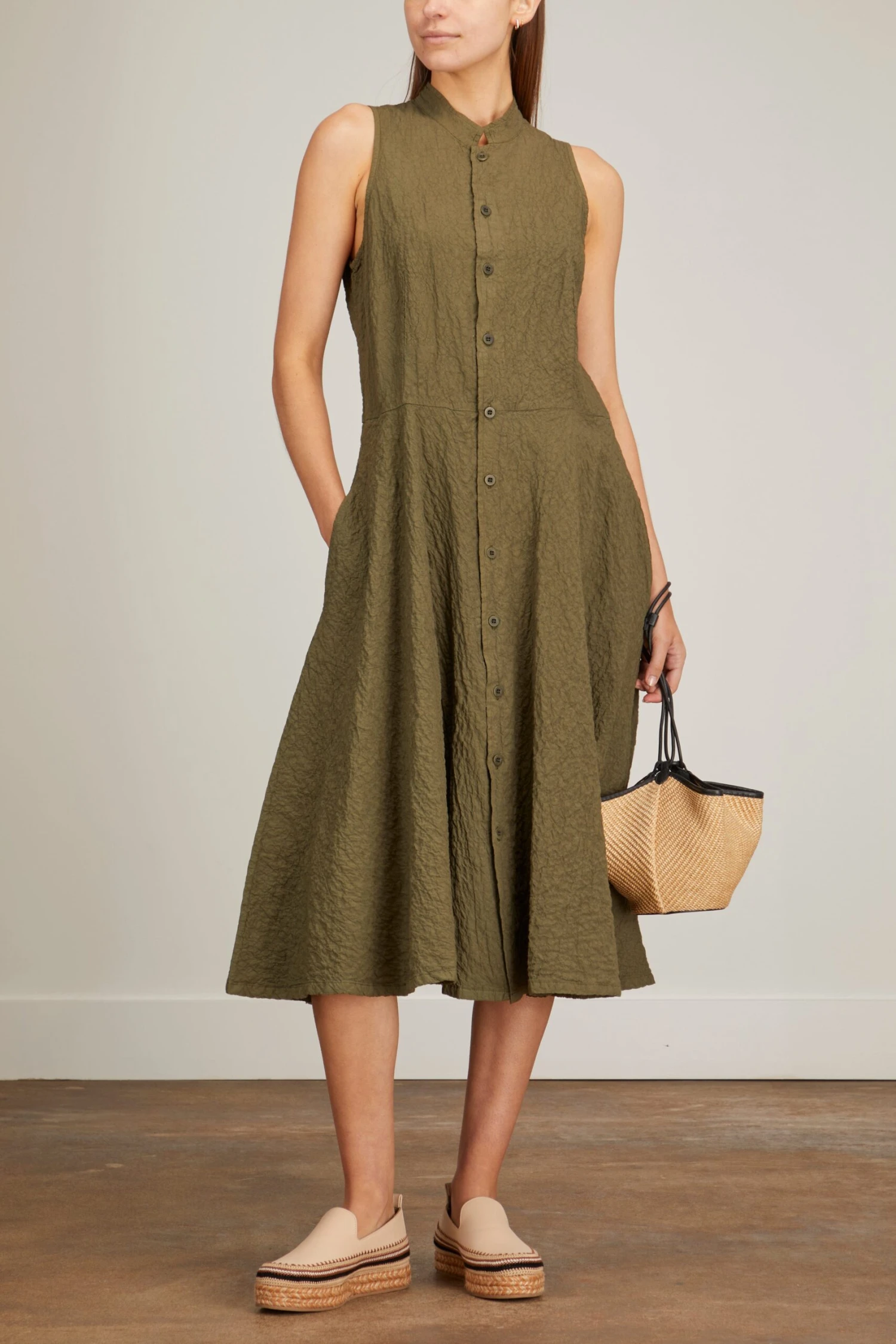 The Labo.Art Abito Sica Dress will be a staple in your spring and summer wardrobe. This shirtdress features a feminine fit and flare silhouette in a textured material. Wear yours with sandals and a crossbody bag.
