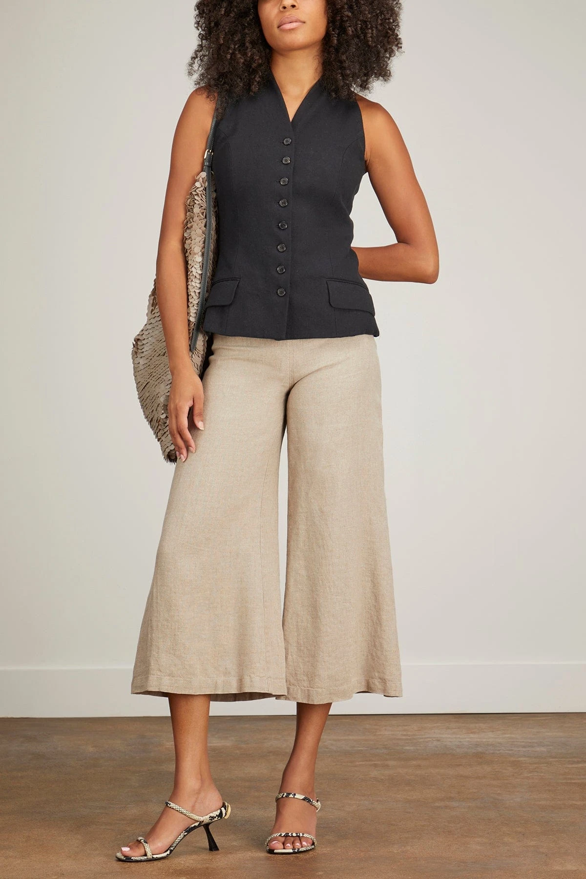 The Rachel Comey Absolute Pant in Natural is an essential. High-waisted voluminous flared pant with an extra wide leg that falls at the ankle, cut this season in Heavy Linen. Side zip closure creates a clean, tailored fit with minimal detailing to reduce bulk.