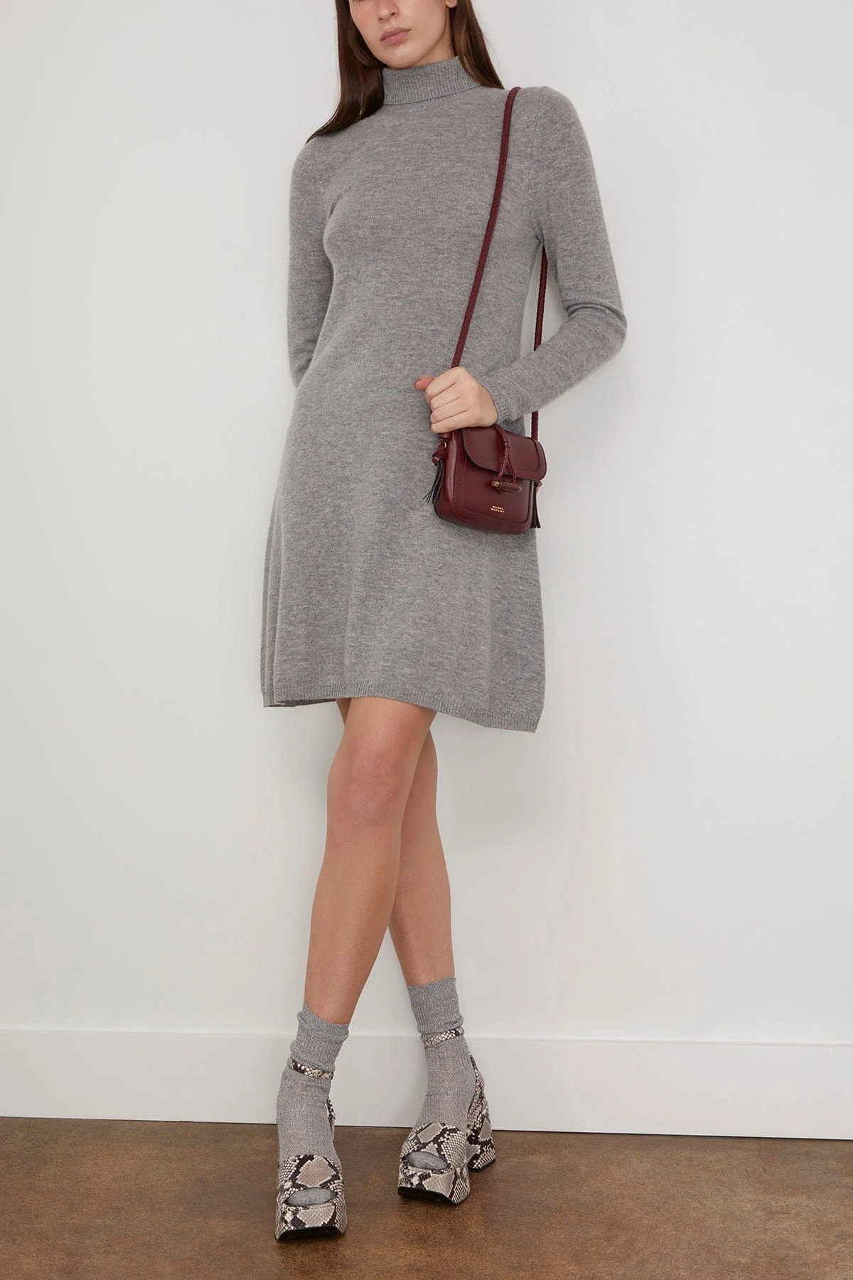 The Allude Mock Dress is a great everyday piece to add to your wardrobe. This knit dress features a mock neckline with a feminine swing skirt. Wear yours with boots and a shoulder bag.