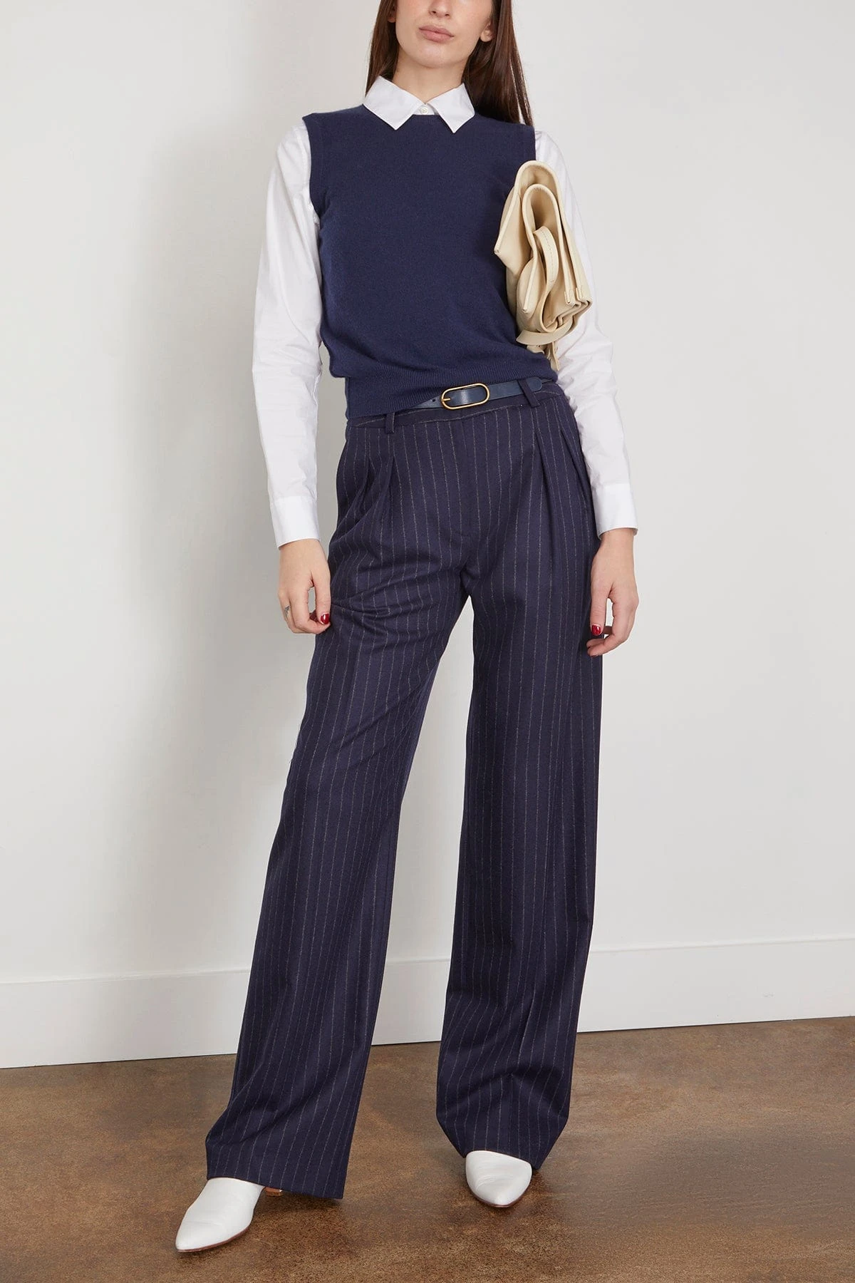 The Allude RD Sweater 0/1 in Sapphire is a sleeveless sweater vest with round neck.
