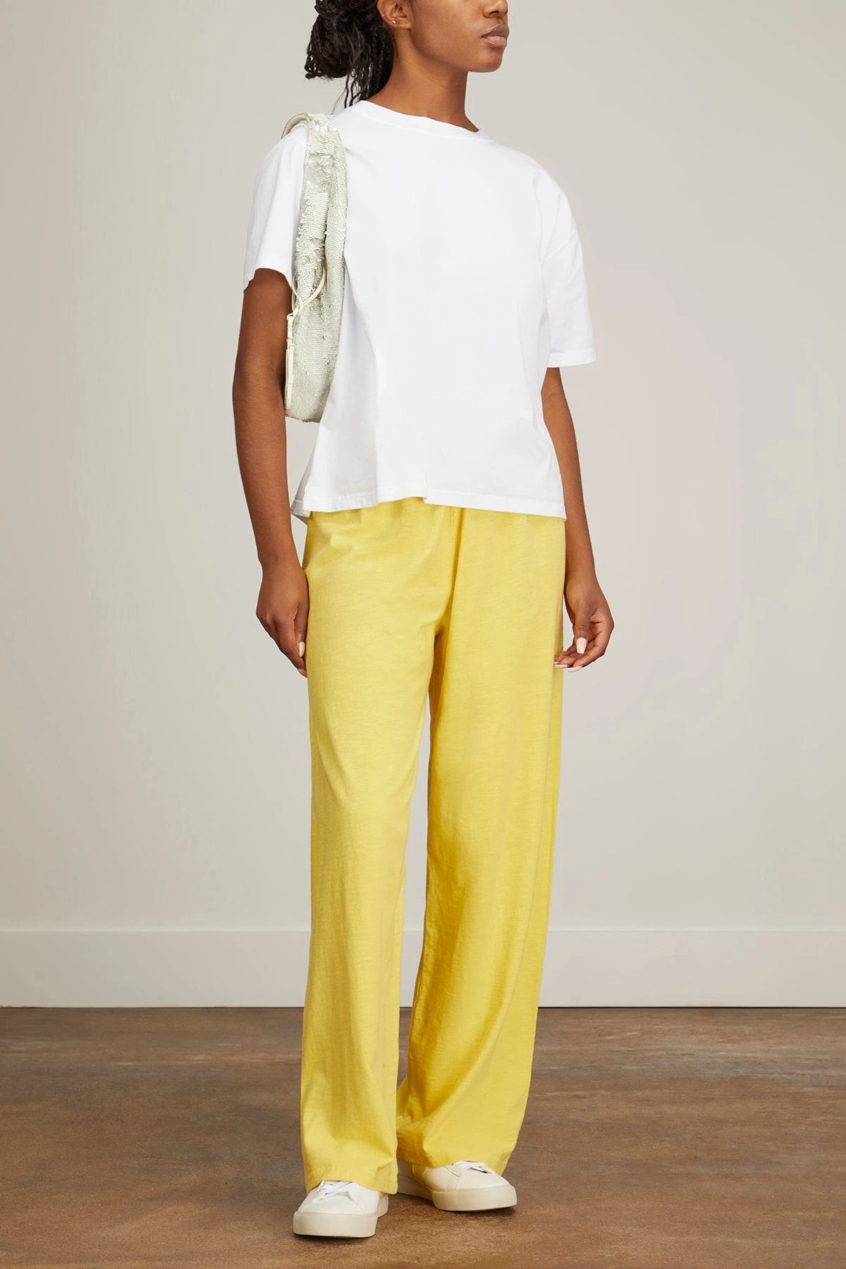The Laweville Pant inVintage Dandelion offers stylish comfort with a wide leg, jogger pant fit, elastic waist and pull on design – all crafted from 100% cotton for long lasting wear. Perfect for day-long wear, these pants offer a relaxed fit with an elegant look.