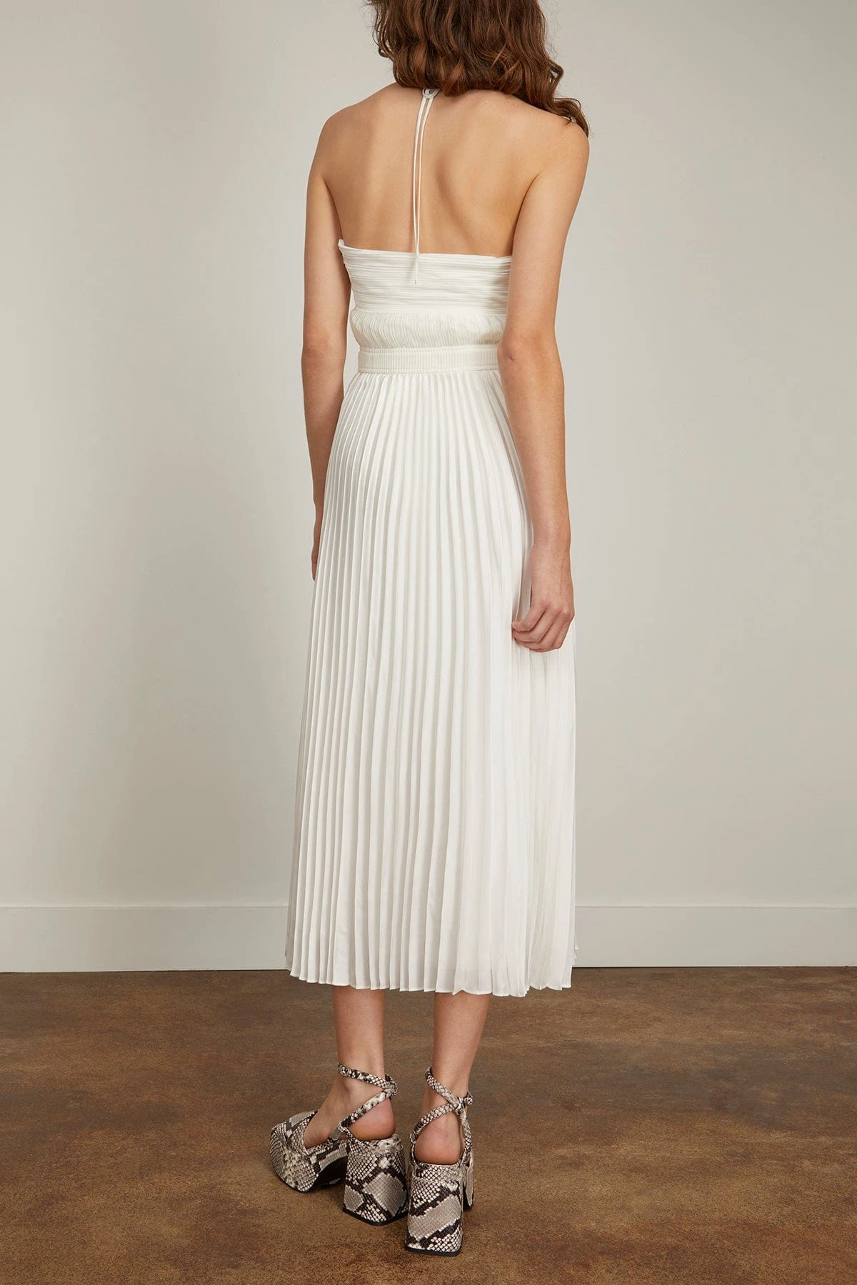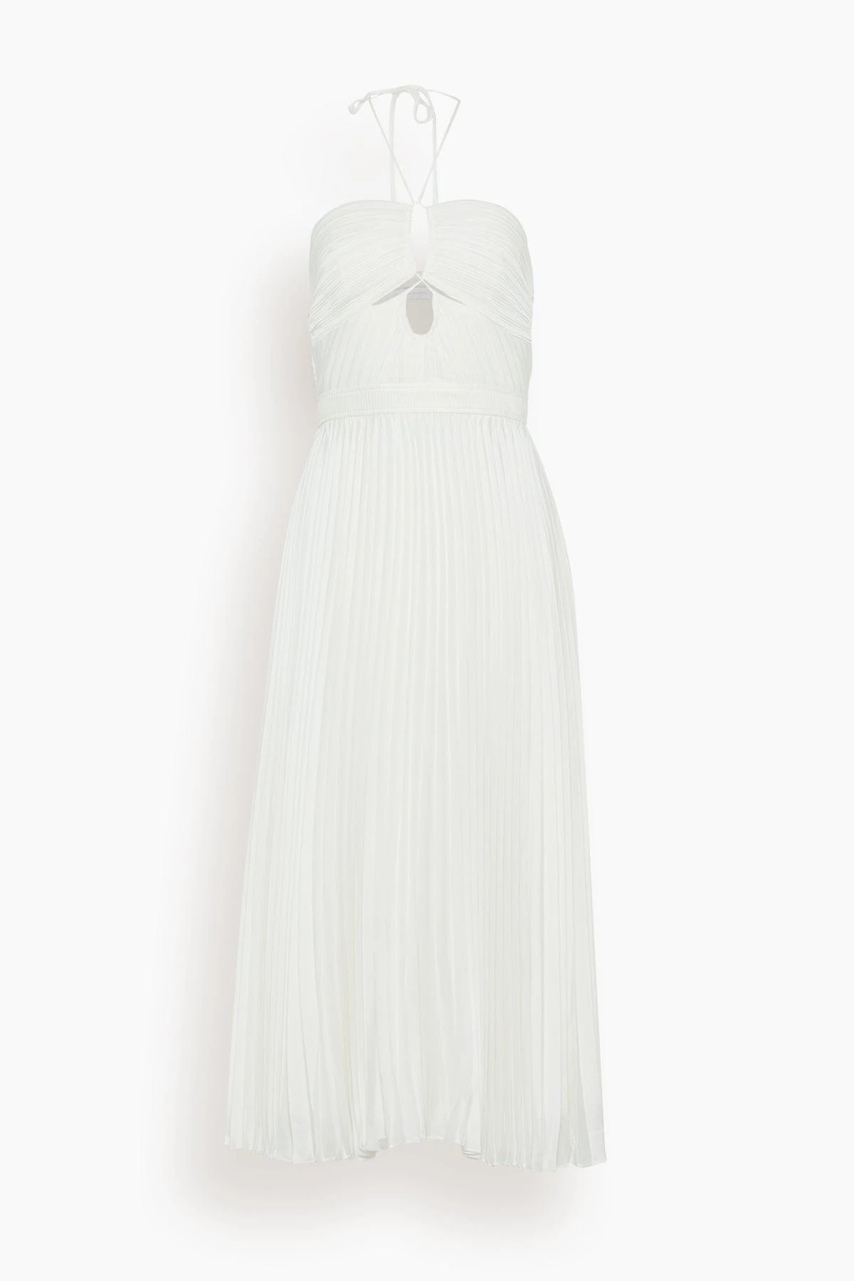 The Simkhai Annita Sleeveless Cut Out Midi Dress features the unique details you love from this designer. This midi dress features beautiful pleating with cutout detailing at the waistline and bust. Wear yours with heels and a shoulder bag.