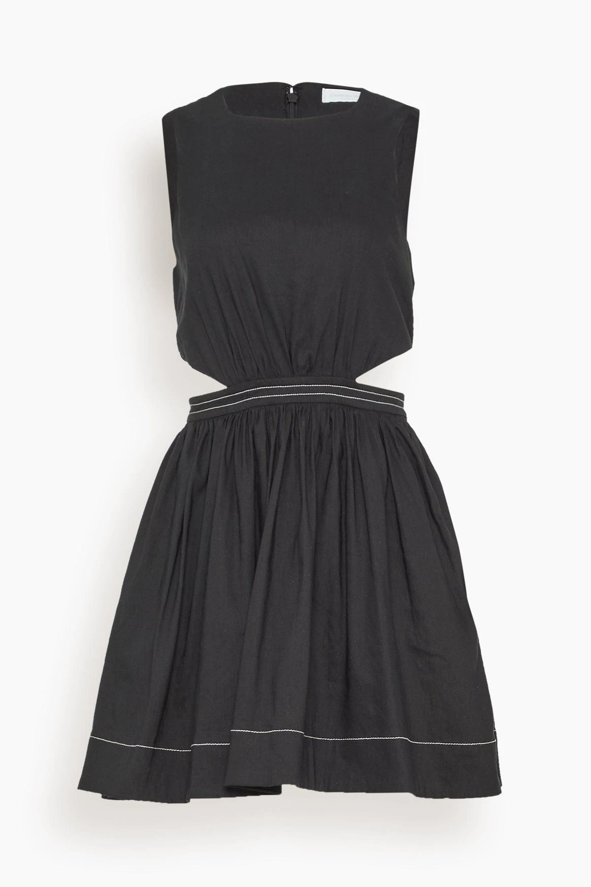 The Simkhai Carlisle Cut Out Mini Dress will easily take your from day to night. This mini dress features a feminine fit and flare silhouette with a cutout waistline in a lightweight linen blend. Wear yours with heels and a shoulder bag.