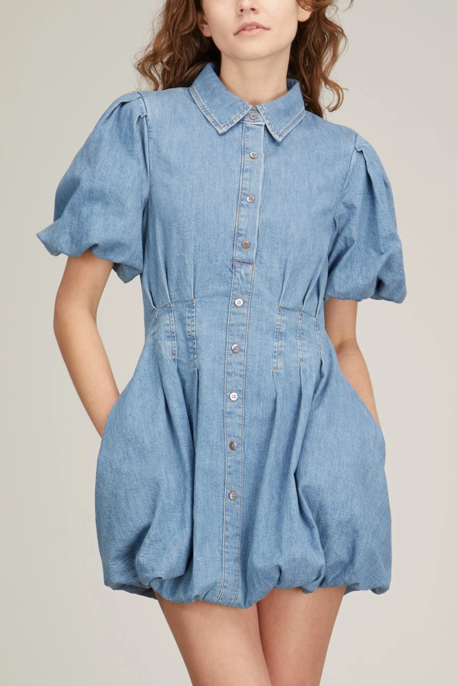 The Jonathan Simkhai Ciara Denim Shirting Dress features the feminine flare you love from this designer. This denim shirtdress features a pintuck waistband with ballooned sleeves and waistband. Wear yours with flats and a crossbody bag.