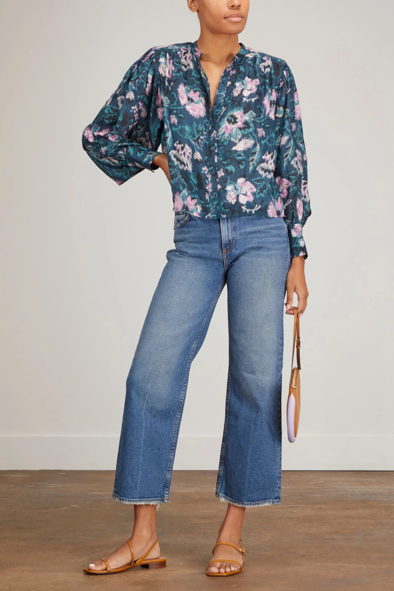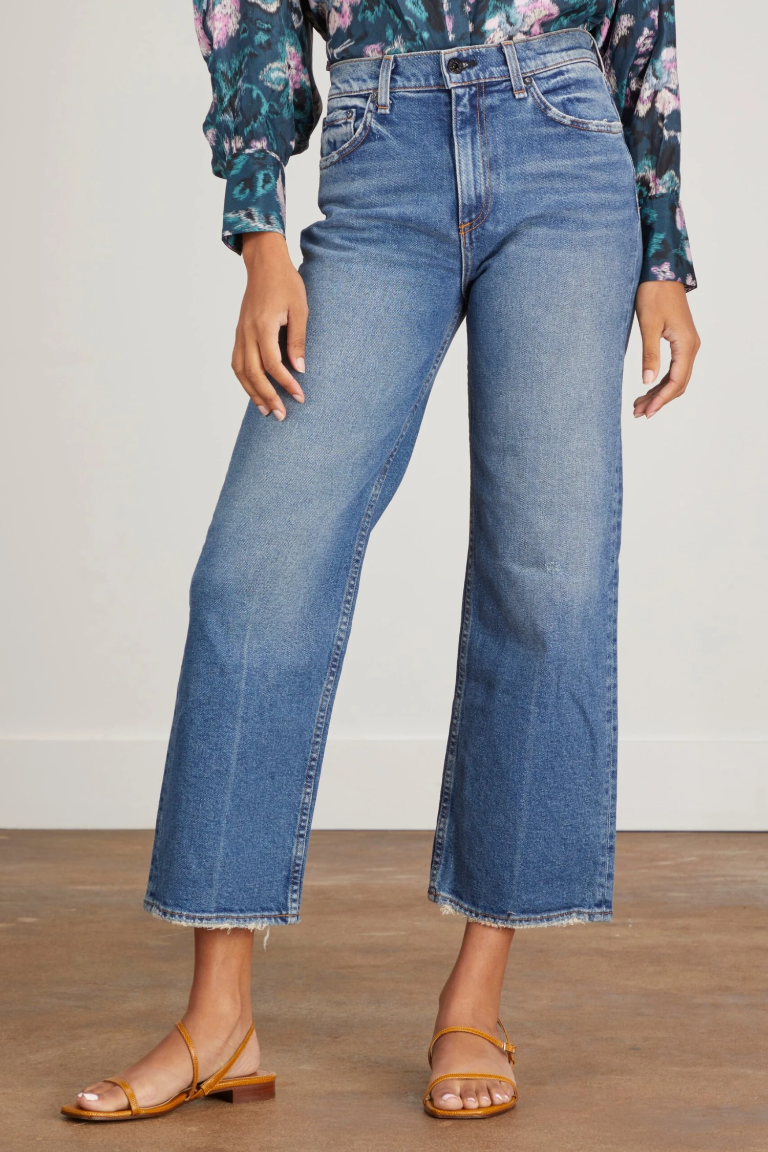 The Askk NY Crop Wide Jean in Marina will be a staple in your wardrobe. These jeans features a flattering high rise with a flared leg and cropped length in a classic wash. Wear yours with a simple button down and sandals.