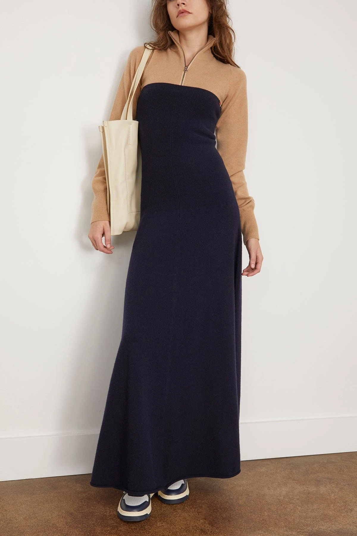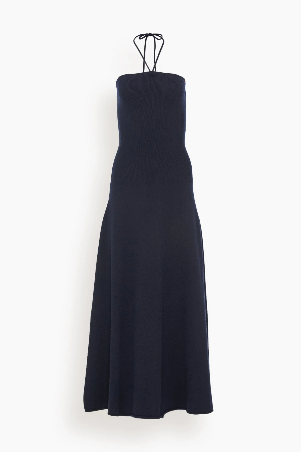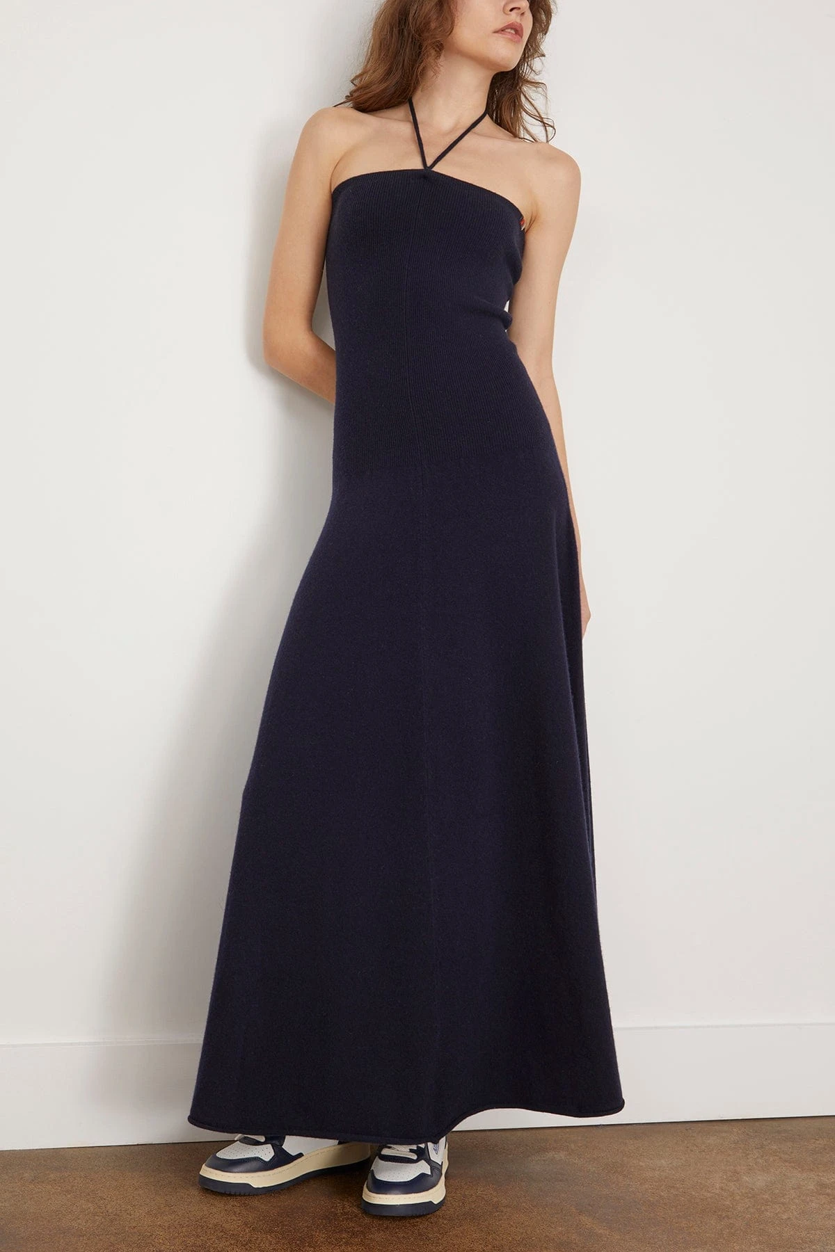 The Extreme Cashmere Diana Halterneck Dress in Navy is a cashmere blend ankle-length dress. The halterneck detailing gives this dress a perfect opportunity to be your transitional go-to. We love it paired with a jean jacket and boots.