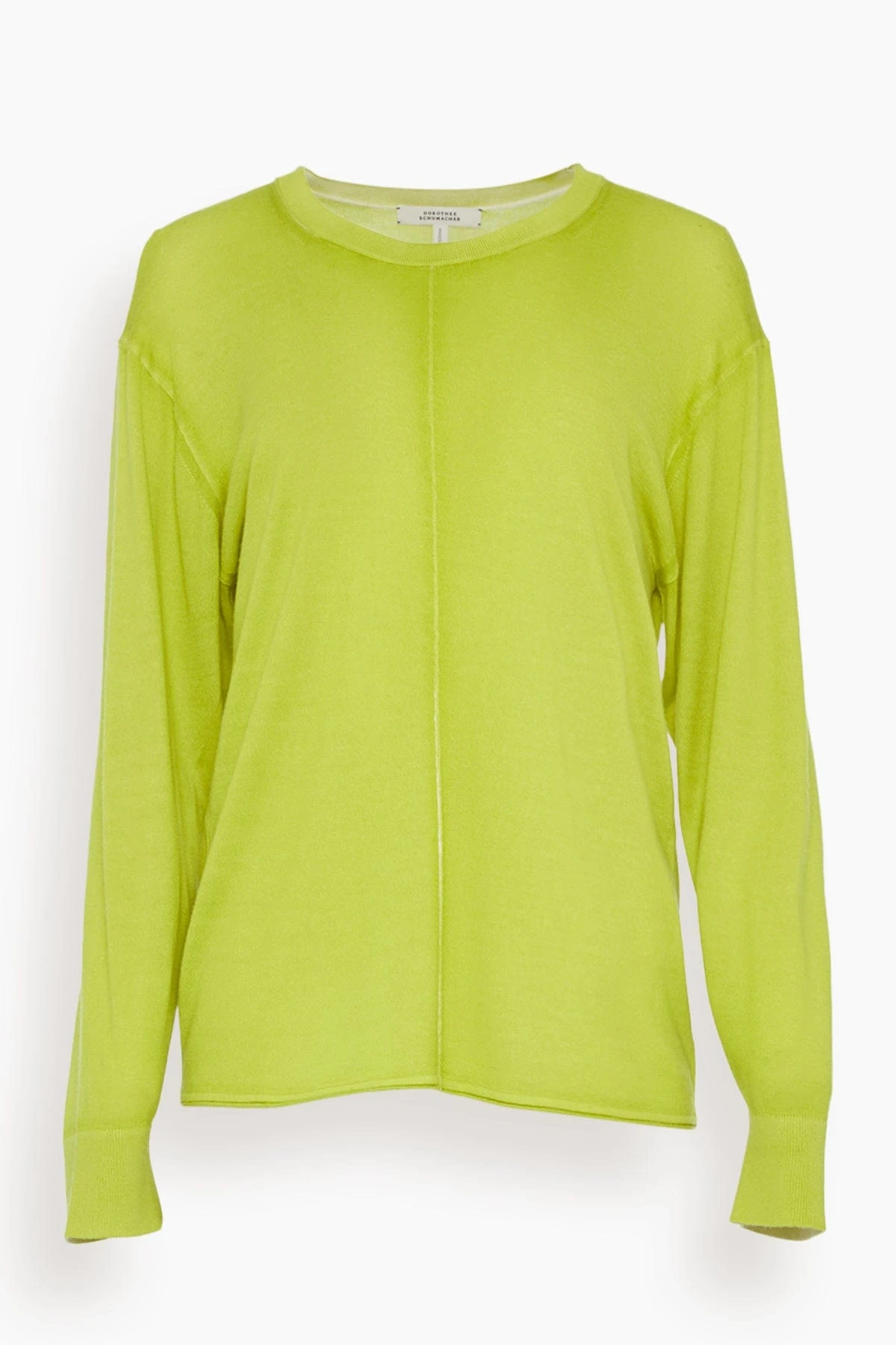 With a T-shirt like feel, the round neck sweater is a comfortable first layer in soft merino-silk. Exposed front and back seams trace the relaxed drape.