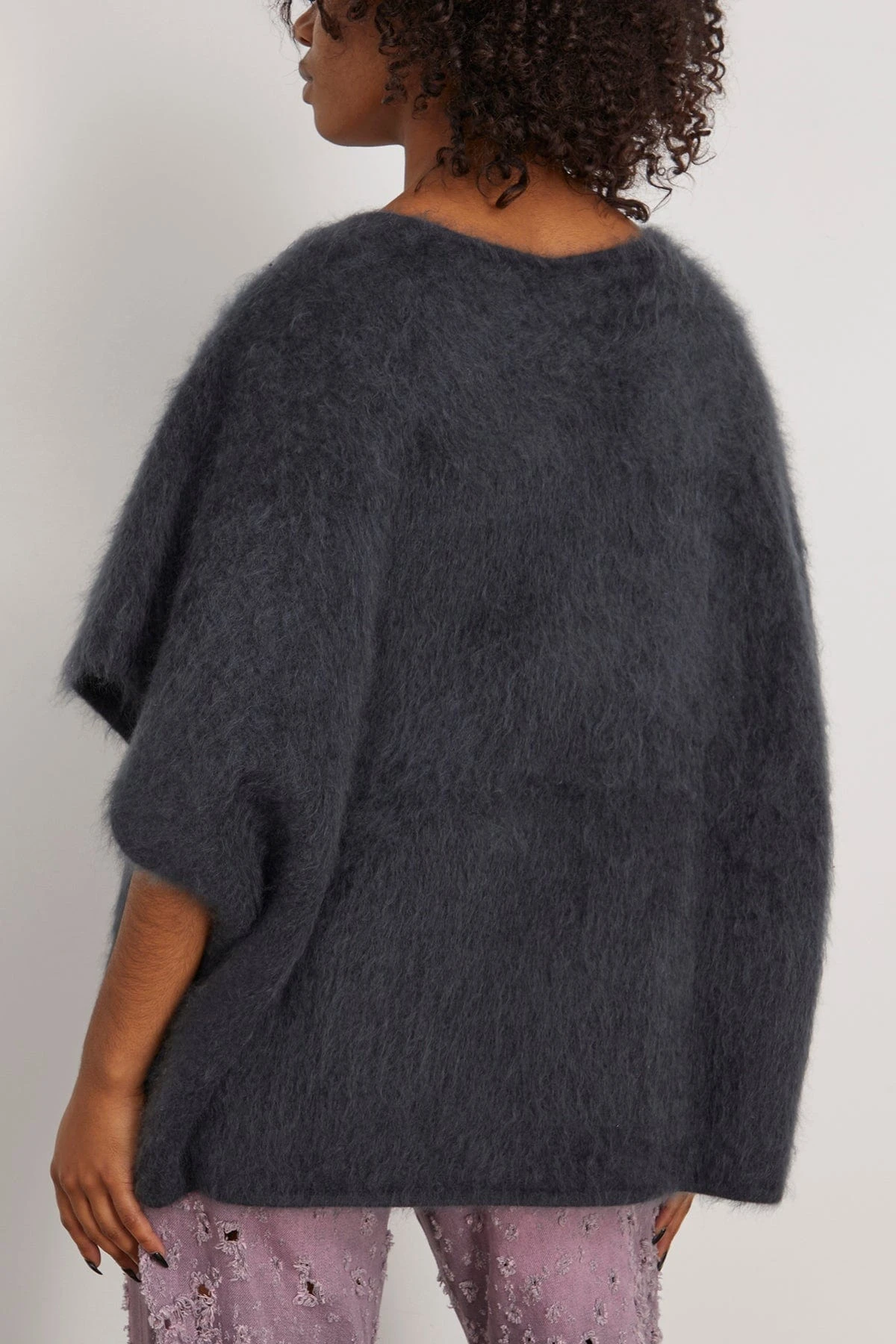 The Lisa Yang Fie Cape in Ink Brushed is crafted from a brushed cashmere with a cozy, relaxed fit. The wide sleeves look so laidback and chic with tailored pants and a tote.