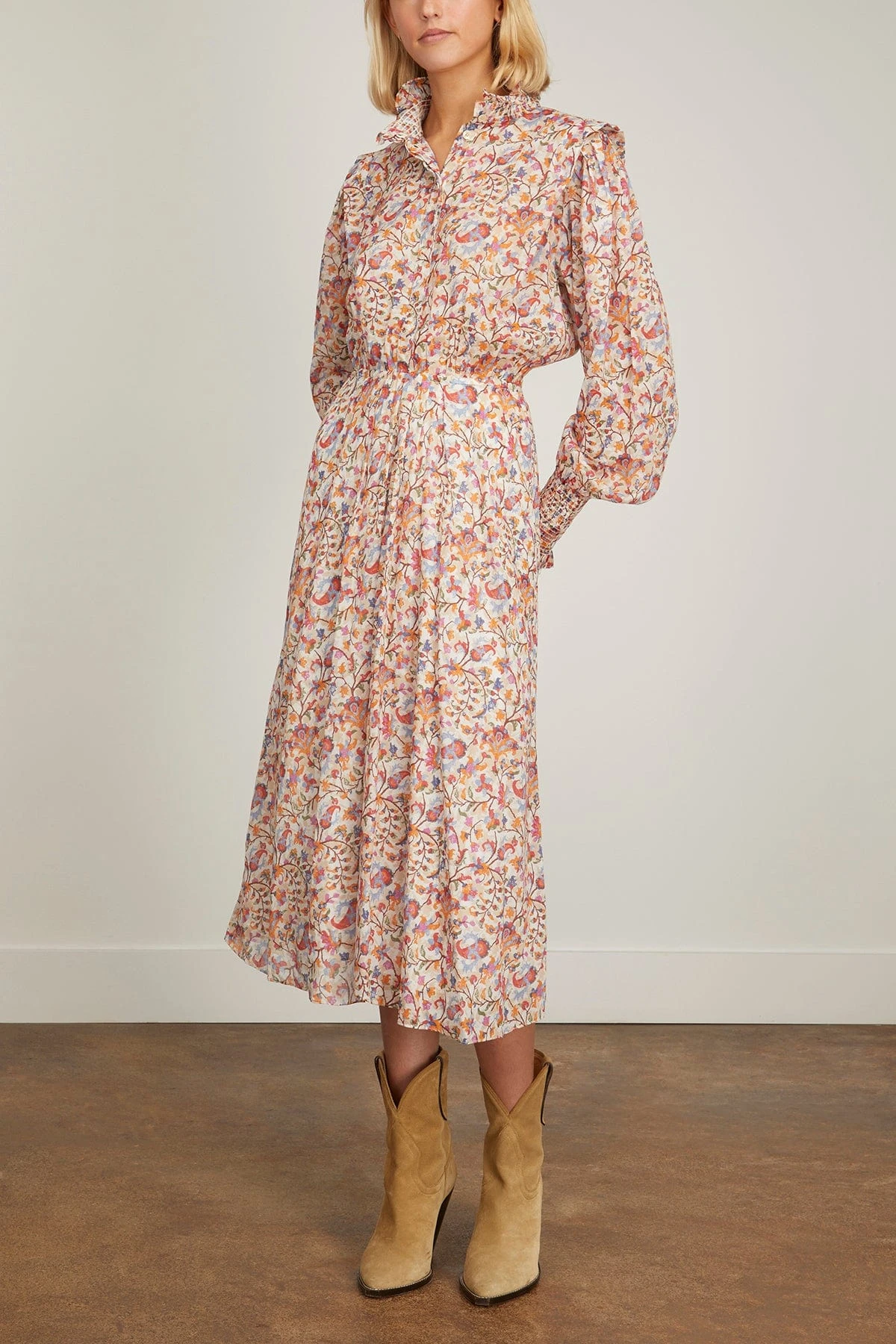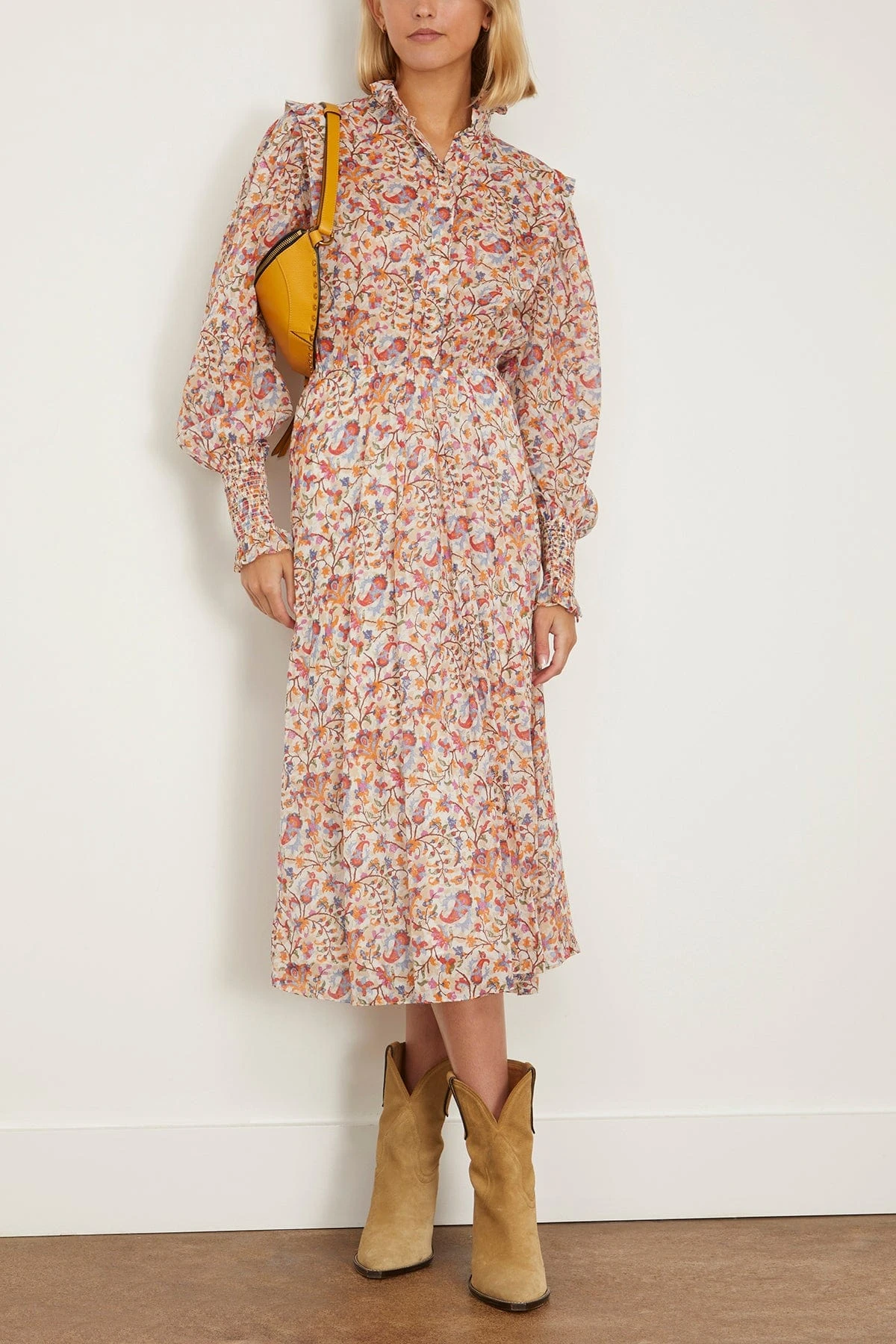 The Isabel Marant Etoile Galoa Dress is crafted in their must-have print of the season. You’ll love the high, ruffled neckline of this midi dress with a fitted waistband. Wear yours with boots and a shoulder bag.