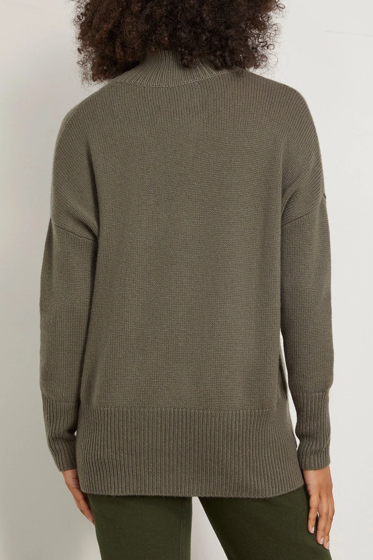 The Lisa Yang Heidi Sweater is a plain knitted sweater with a contrast ribbed neck, cuffs and hem. The standing ribbed roll neck is balanced with dropped shoulders and a relaxed silhouette, making Heidi the perfect wardrobe staple. We love it worn with a simple slip skirt and tall boots.