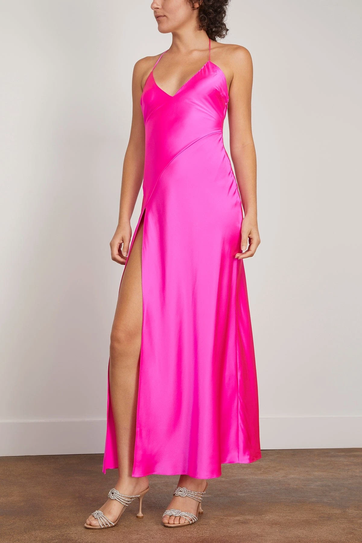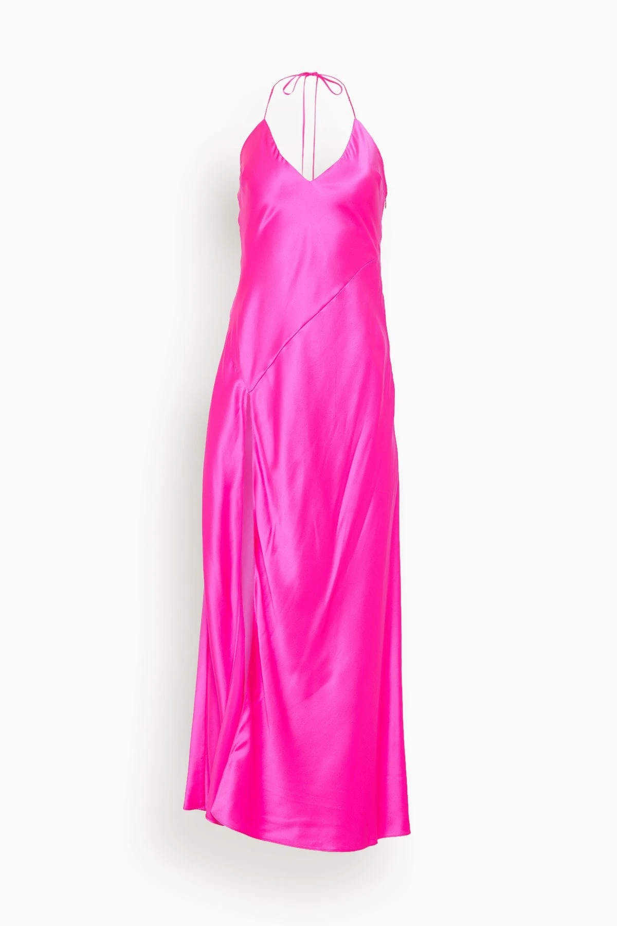 The Dannijo Hi Slit Deep V Halter Maxi Dress in Hot Fuschia is a unique twist to a classic slip dress. There’s nothing this stunning maxi dress can’t do.