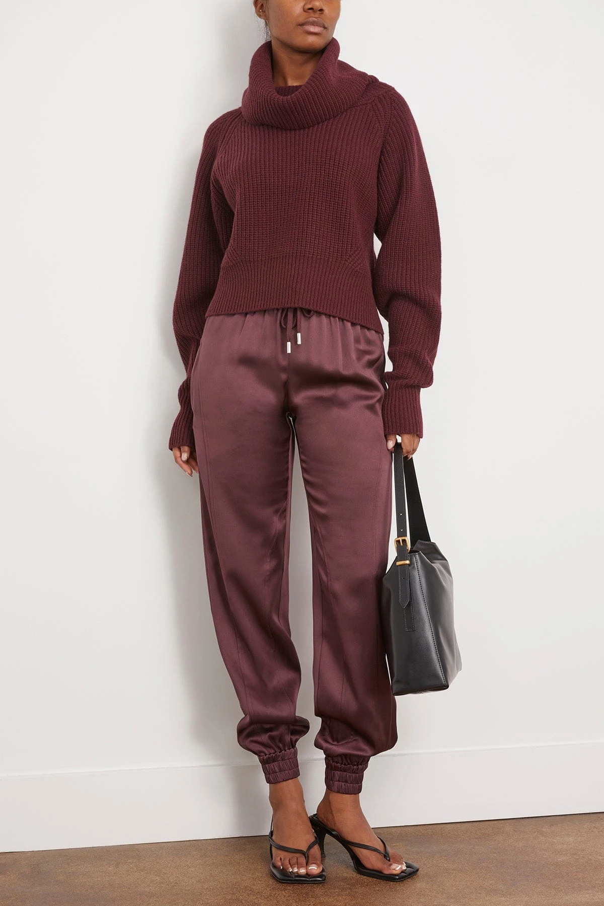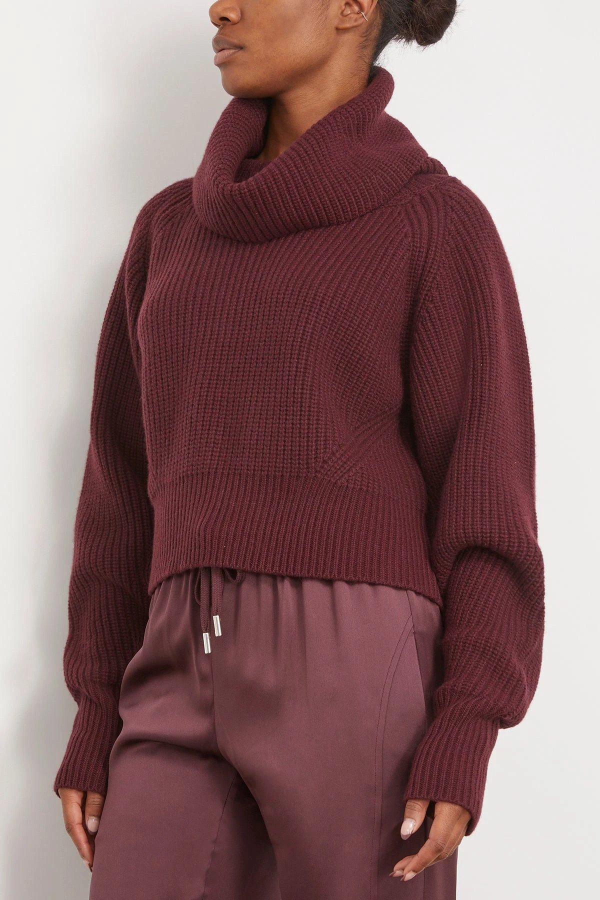 The Sa Su Phi High Neck Sweater in Bordeaux is a luxurious knit sweater with wide turtleneck design. We love this beautiful knit worn with jeans and booties.