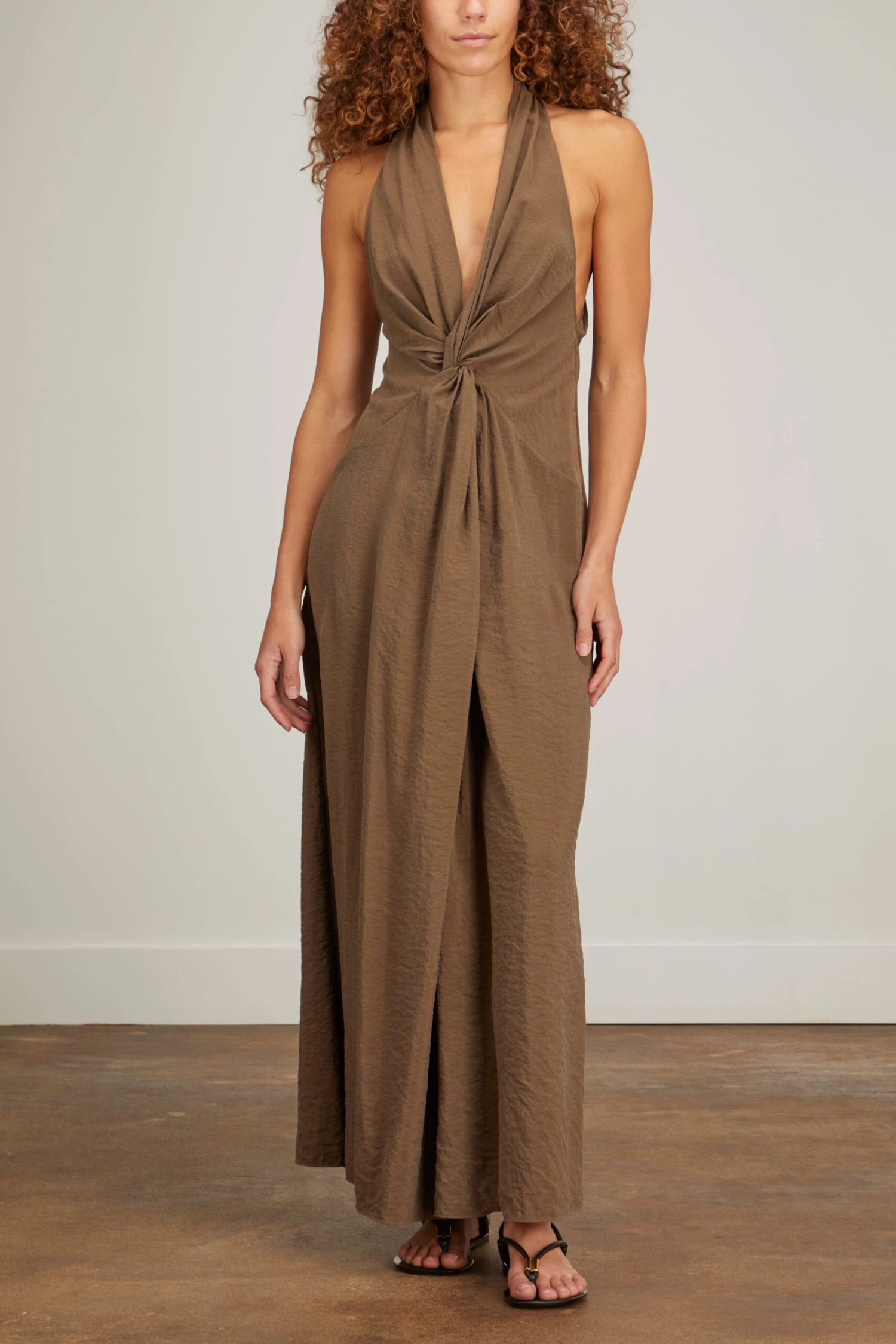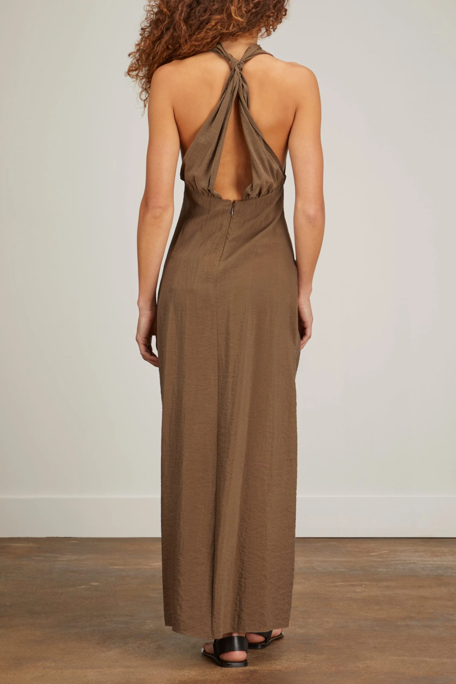 The Lee Mathews Lily Dress is a standout piece from their Spring 23 Collection. This gown features a twisted deep v-neckline with a flowing sihouette in a lightweight silk blend. Wear yours with heels and a clutch.