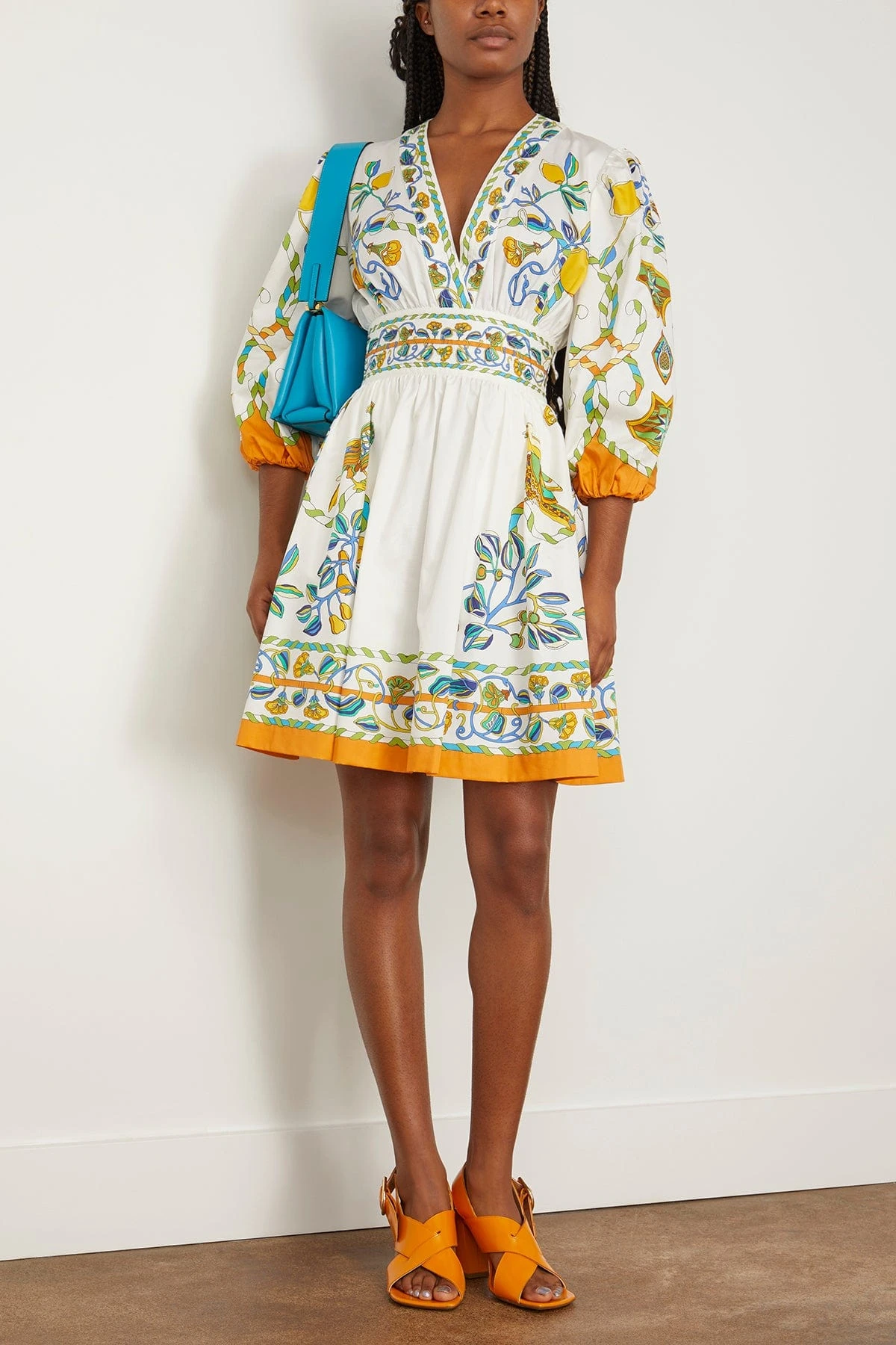 With its deep V neckline, cinched waist and frisky hemline, La Double J’s new Margherita Dress is all about celebrating you petite babes out there. Its seriously pretty with a thick waistband that draws you in, while the puffy skirt and sleeves are plenty romantic thanks to our bouncy cotton poplin. Spot the lucky pepper in this stunning Naples-inspired hand-placed print! Also great on leggy legendary ladies, we see this beauty as your new seaside to soiree BFF, but its cute for summer weddings too.