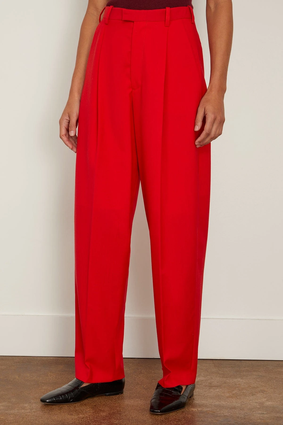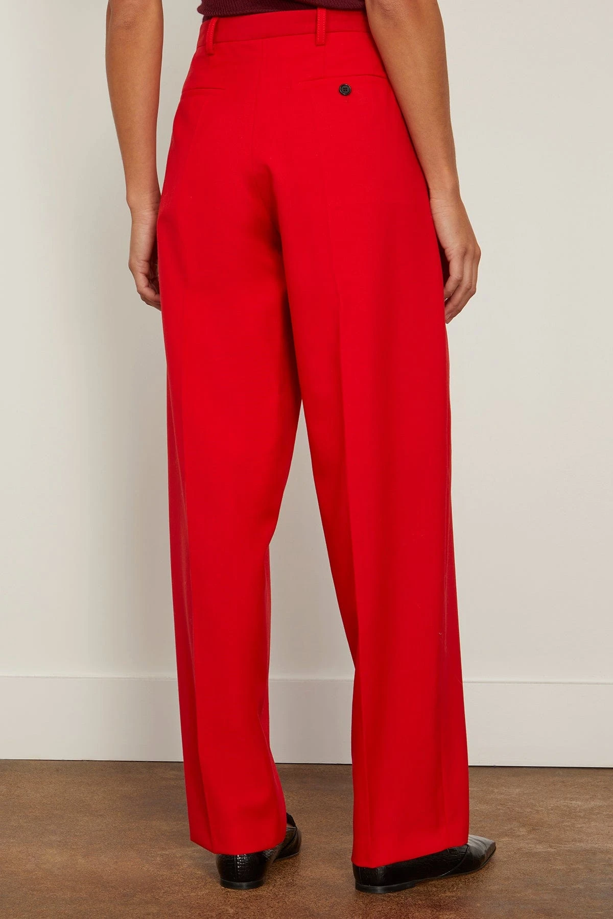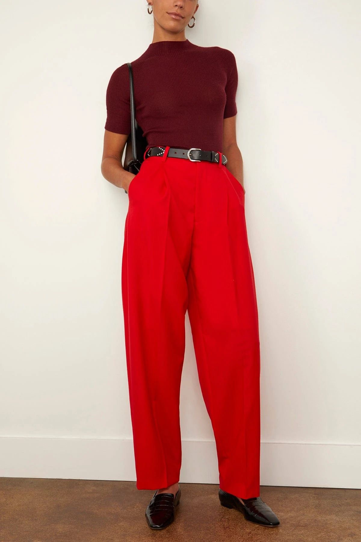 The Marni Trouser in Lacquer will be a standout piece in your fall wardrobe. These trousers feature a tapered leg and high rise with bold front pleats. Wear yours with a blouse tucked in.