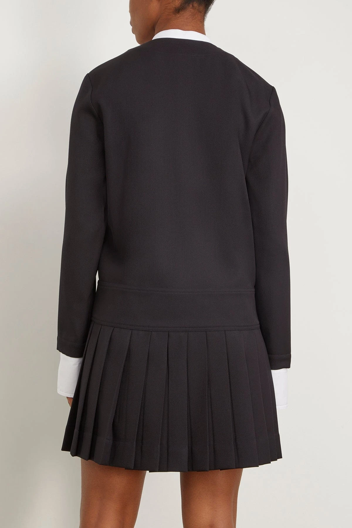 The Plan C Mini Dress in Black Navy takes its inspiration from menswear. You’ll love the mini pleated skirt with a drop waistline and button down front of this dress. Wear yours with loafers and a shoulder bag.