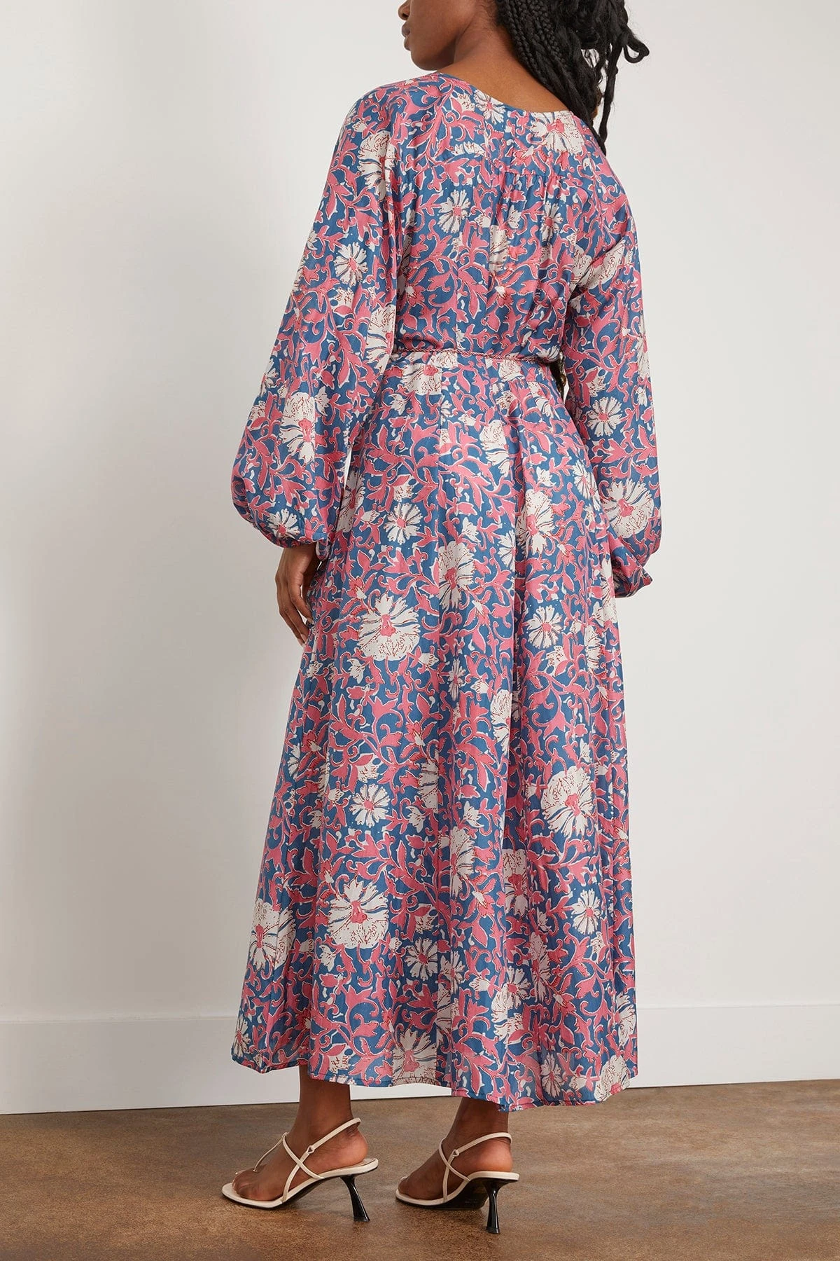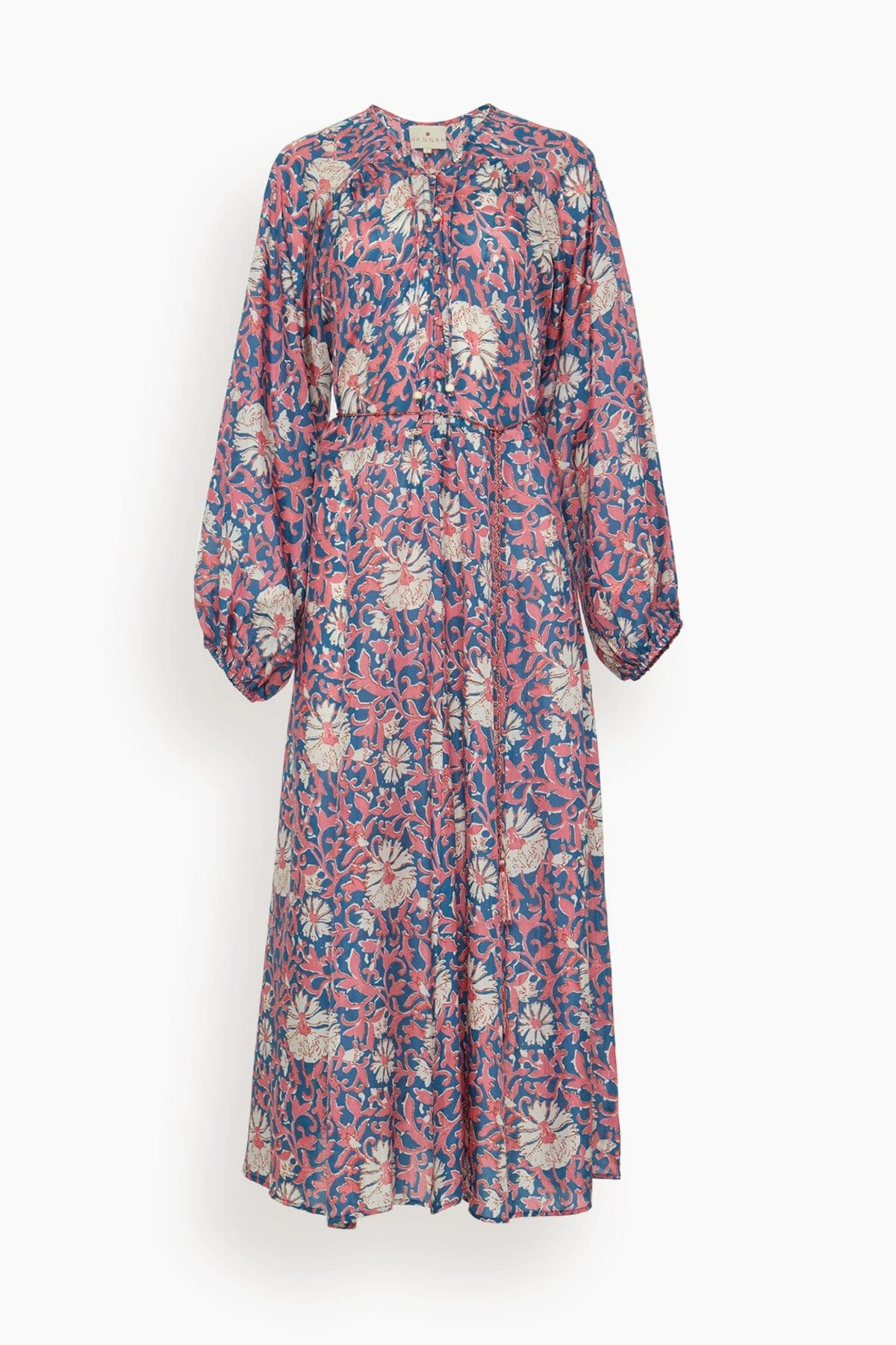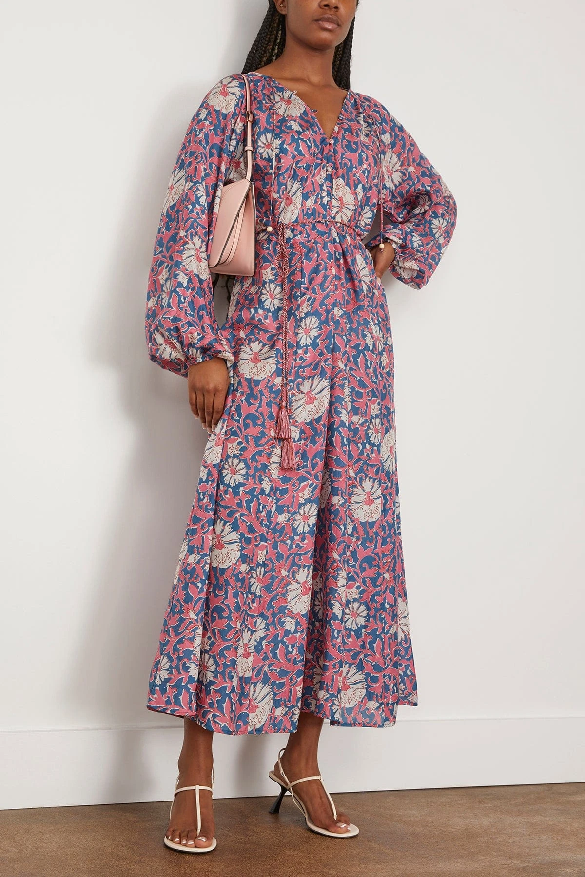 The Hannah Artwear Oceanus Dress is updated for Holiday 23. Created in silk habotai, hand dyed and hand block printed in the Priva Print. We love it paired with boots and a tote.