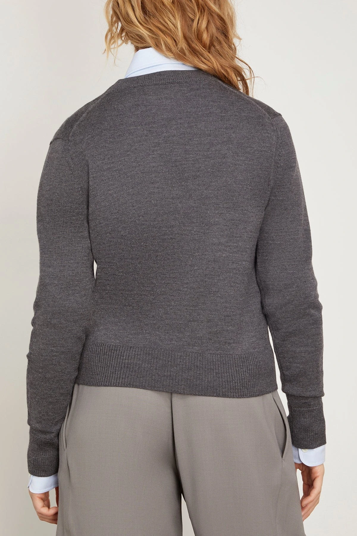 The Ami Red Ami De Coeur Cardigan features their signature logo. You’ll love the slim silhouette of this classic wool cardigan. Wear yours with trousers and boots.