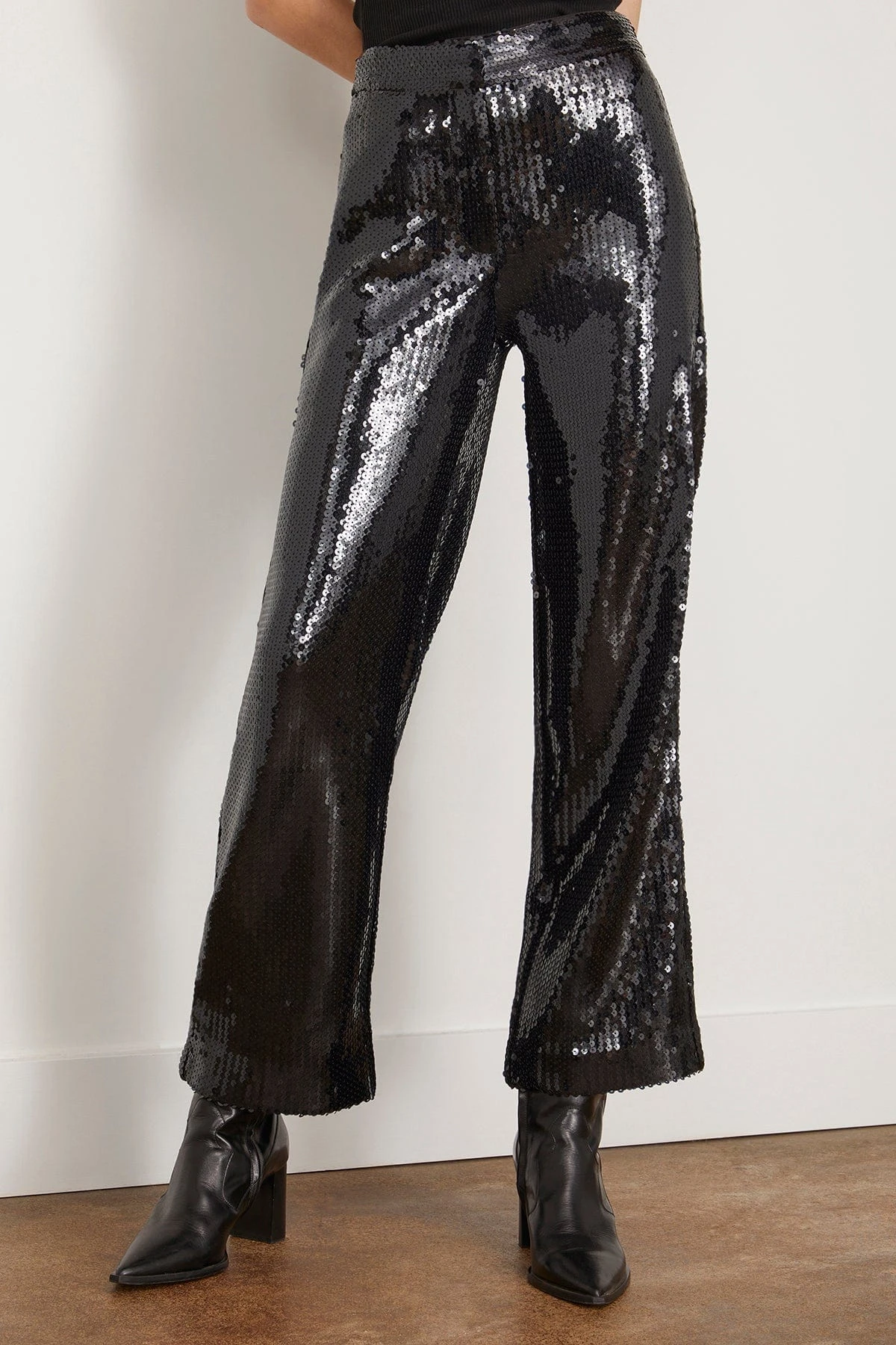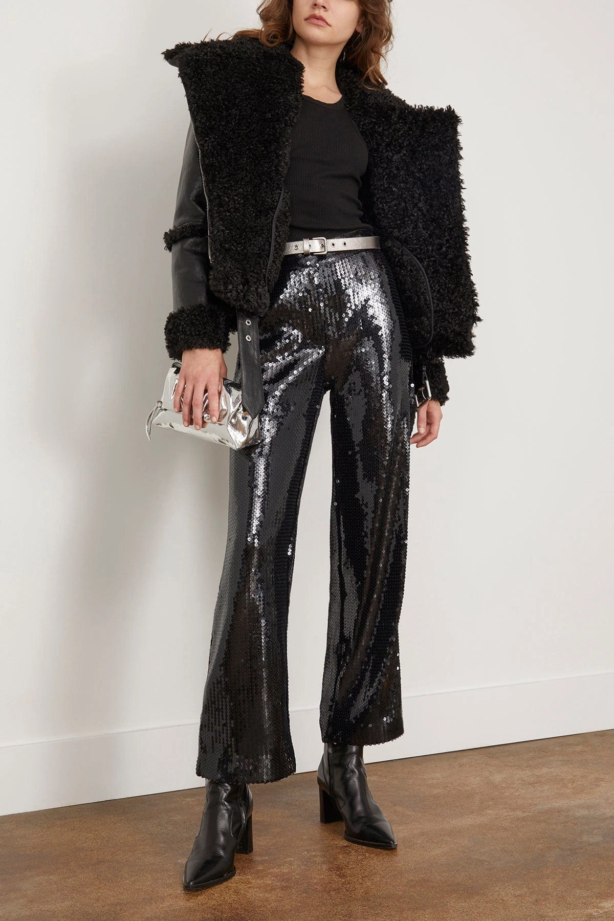 The Samsoe Samsoe Agneta Trouser in Black are regular fitting sequined trousers with a regular height waist. We love it paired with a silky top and heels.