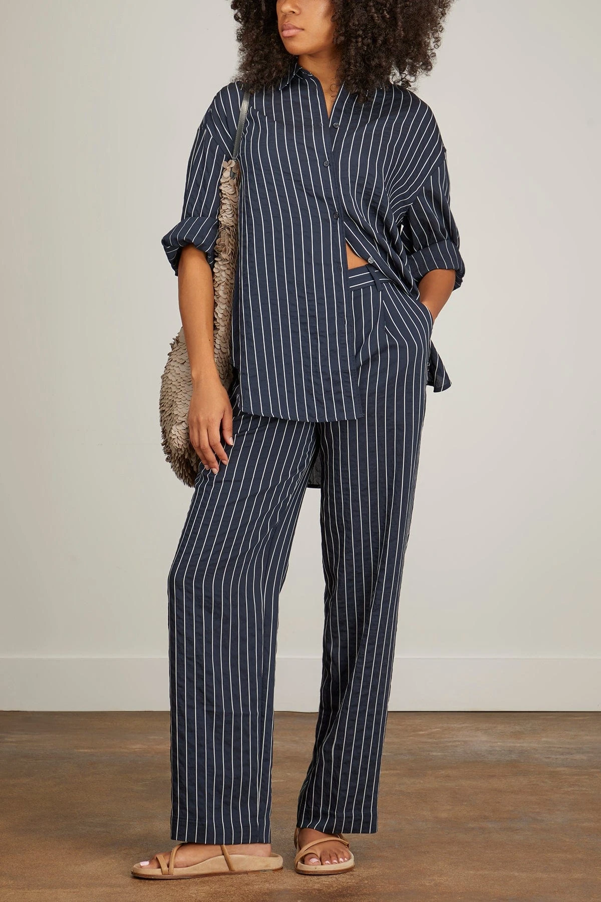 The Samsoe Samsoe Marika Shirt will quickly become a staple in your fall wardrobe. You’ll love the striped material of this oversized button down shirt. Wear yours with the matching trousers.