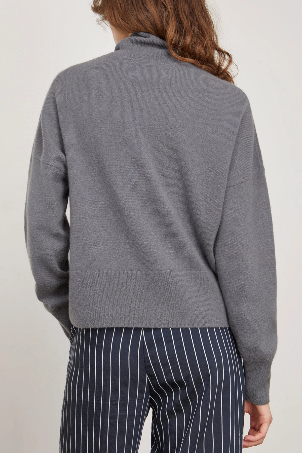 The Samsoe Samsoe Nola Turtleneck in Iron Gate is a cashmere turtleneck jumper with dropped shoulders and a boxy fit. It features long sleeves, a ribbed collar, deep rib trims on the cuff and hems, and fully fashioned seams.