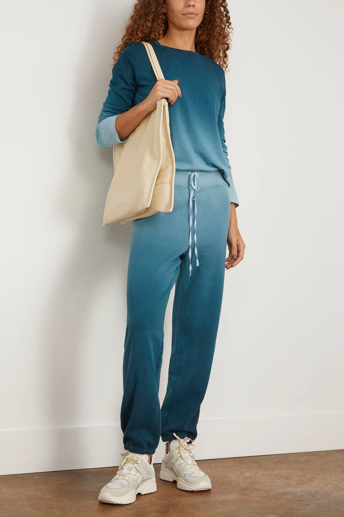 The Raquel Allegra Topanga Pant in Teal Mist is a cozy styled sweatpant that’s handpainted in teal to mist. We love it worn with your favorite graphic tee and sneakers.