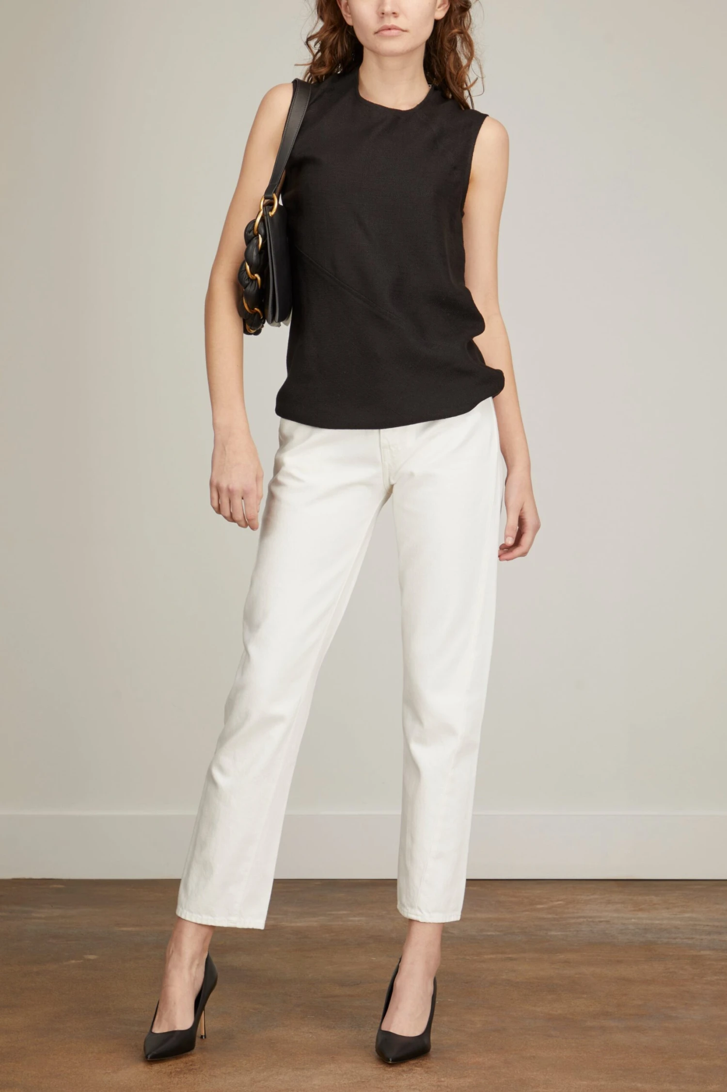 The Toteme Twisted Seam Denim will be a staple in your wardrobe. These jeans feature twisted side seems with a cropped leg in rigid organic cotton. Wear yours with a sweater and flats.