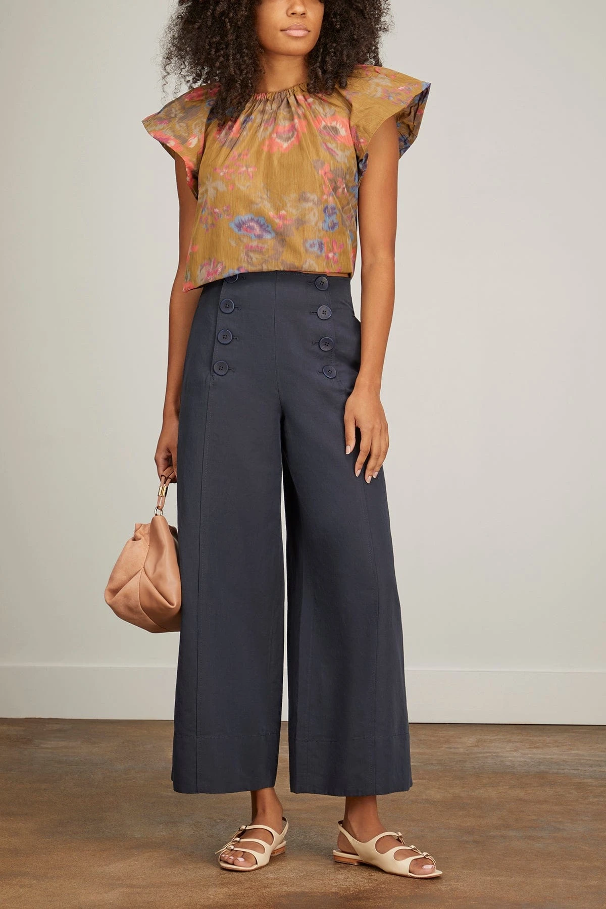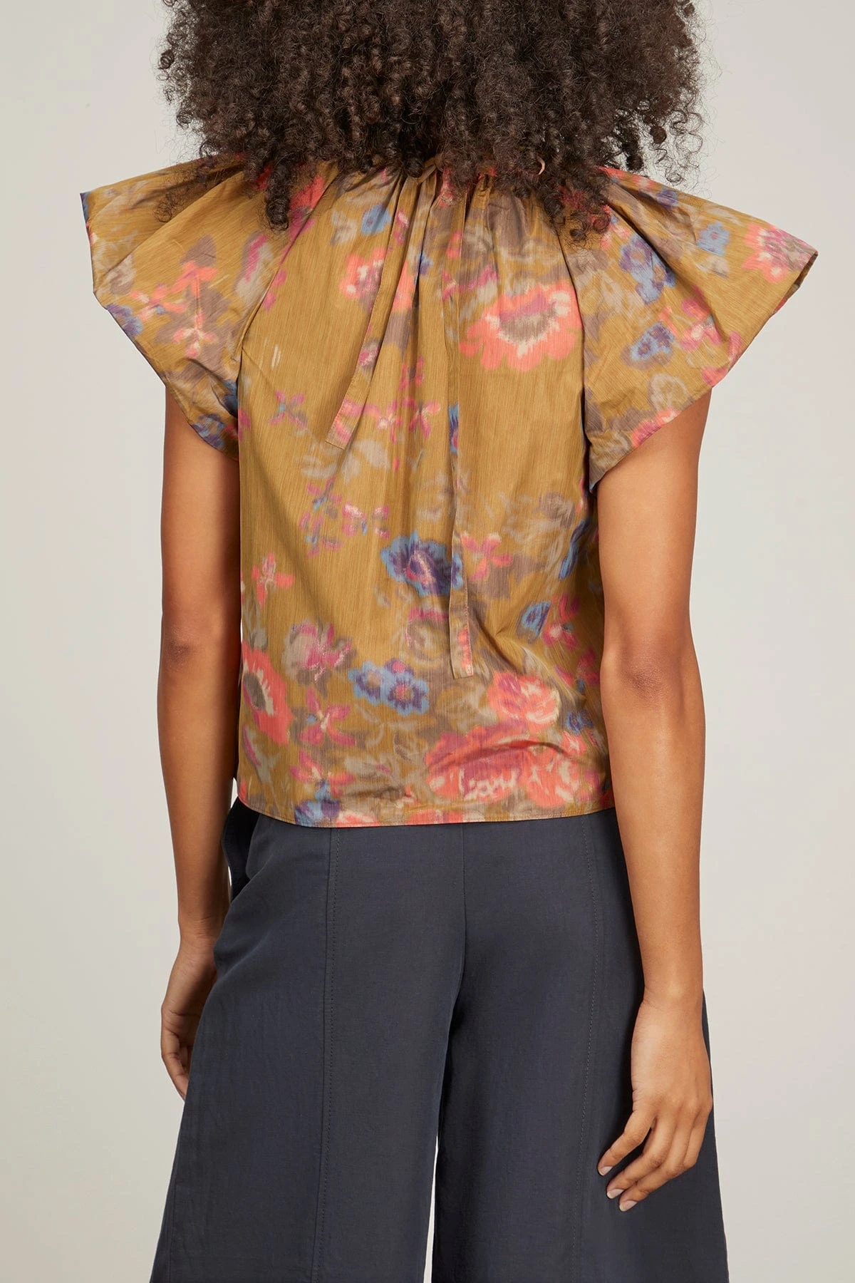 The Ulla Johnson Flo Top features the feminine flare you love from this designer. This top features flutter, puffed sleeves in a floral printed taffeta. Wear yours with trousers and sandals.