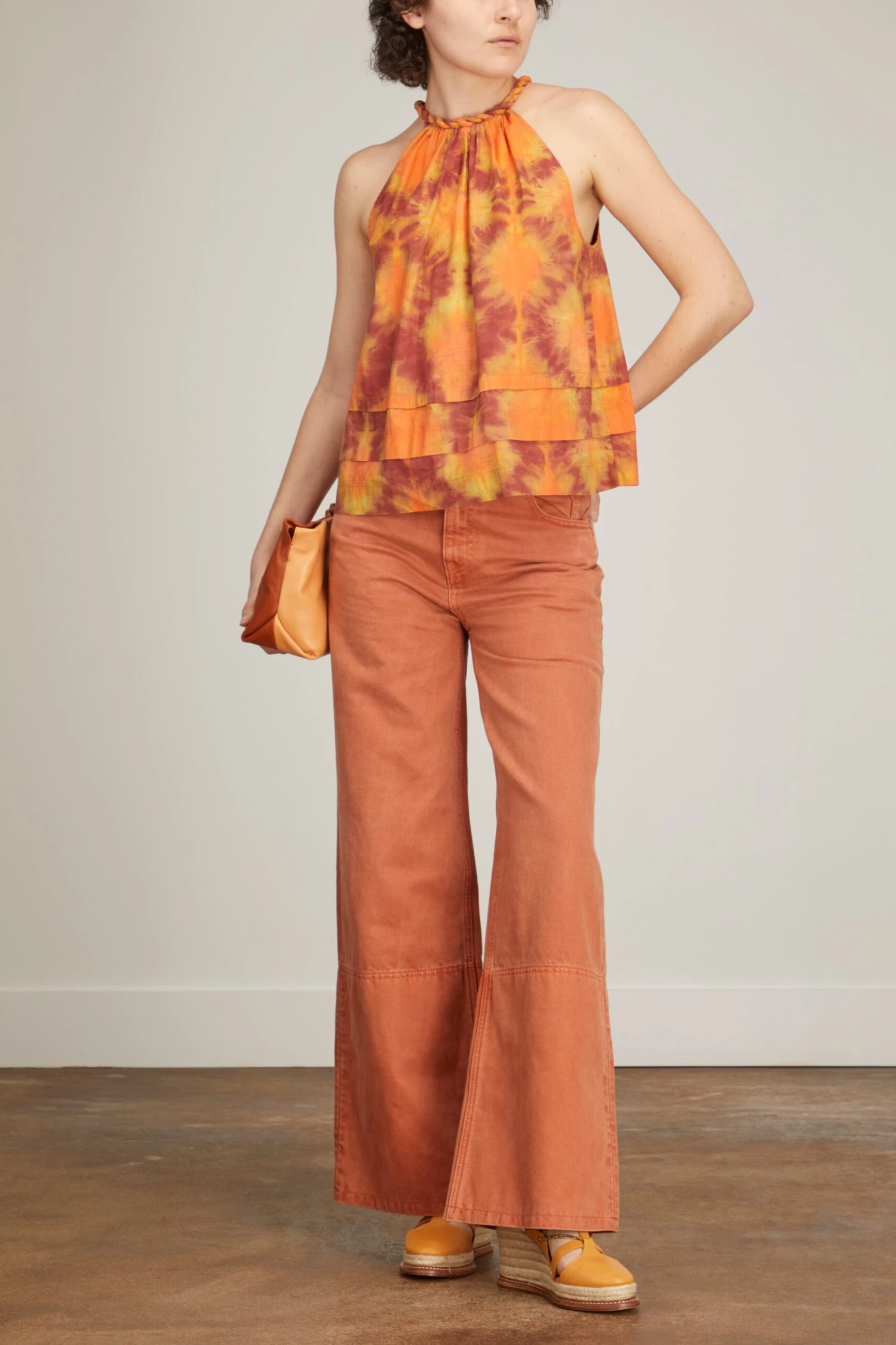 The Ulla Johnson Wilda Top is crafted in their must-have shibori-inspired poplin. This top features a braided halter neckline with a loose silhouette and pintuck hemline. Wear yours with trousers and sandals.