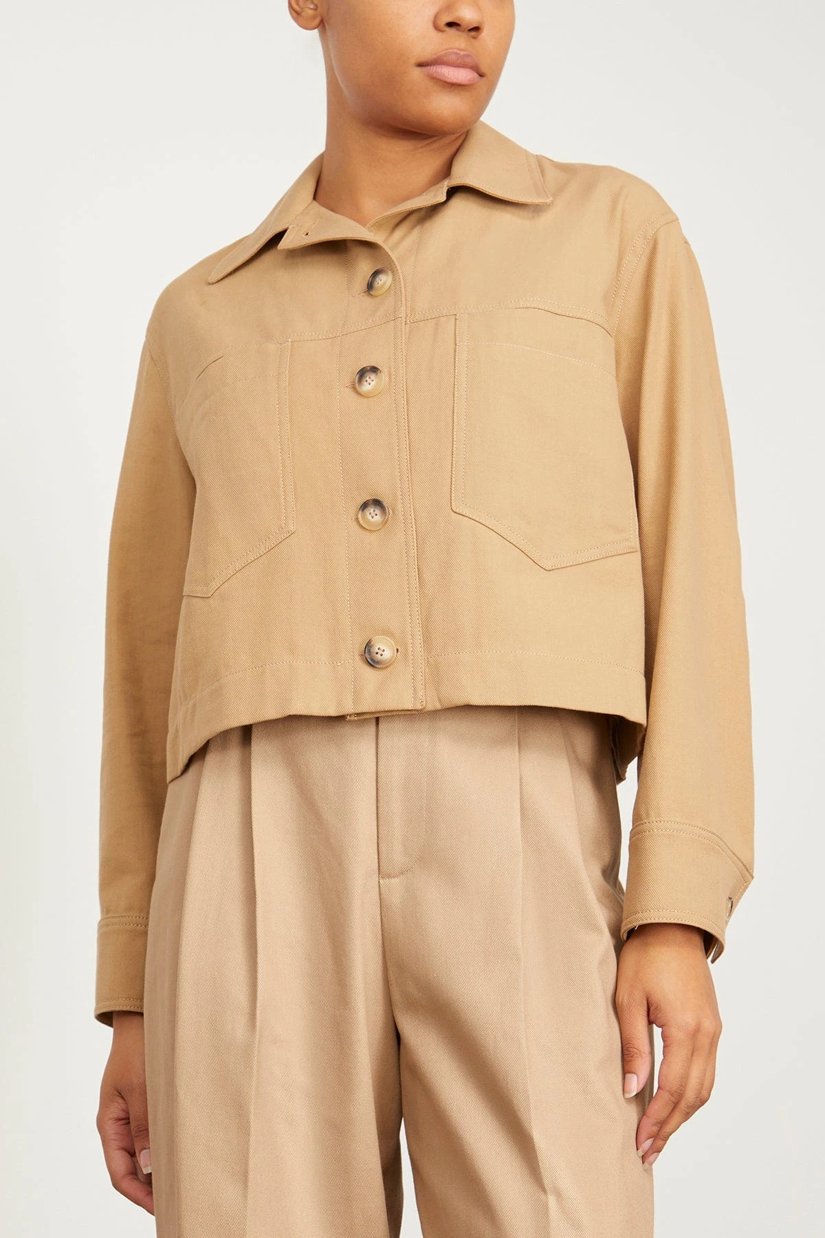 The Vanessa Bruno Barnabe Jacket is a fresh take on a denim jacket. You’ll love the boxy, cropped silhouette of this jacket in beige denim for a unique look. Wear yours with jeans and flats.