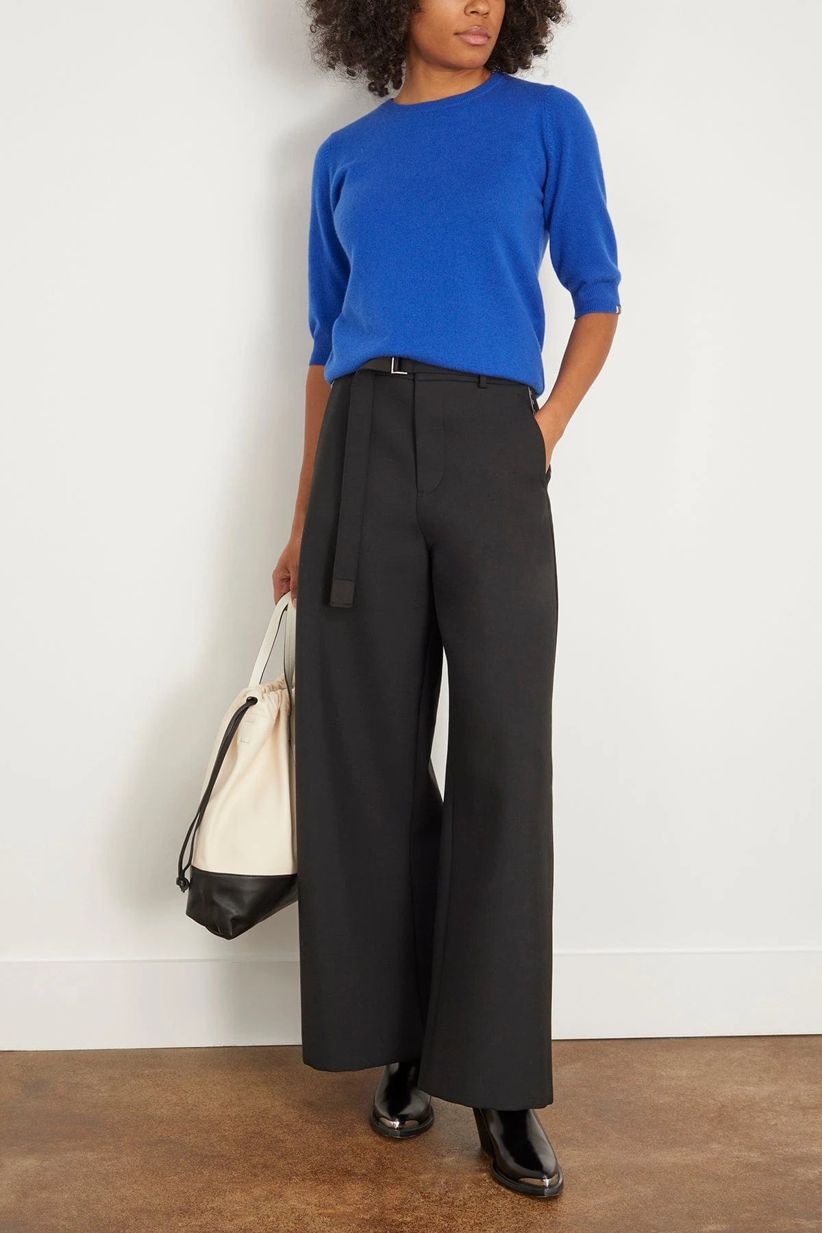The Extreme Cashmere Well Sweater was crafted with year-round wear in mind. This short sleeve sweater is crafted in their signature stretch cashmere with a straight silhouette. Wear yours with a skirt and boots this season.