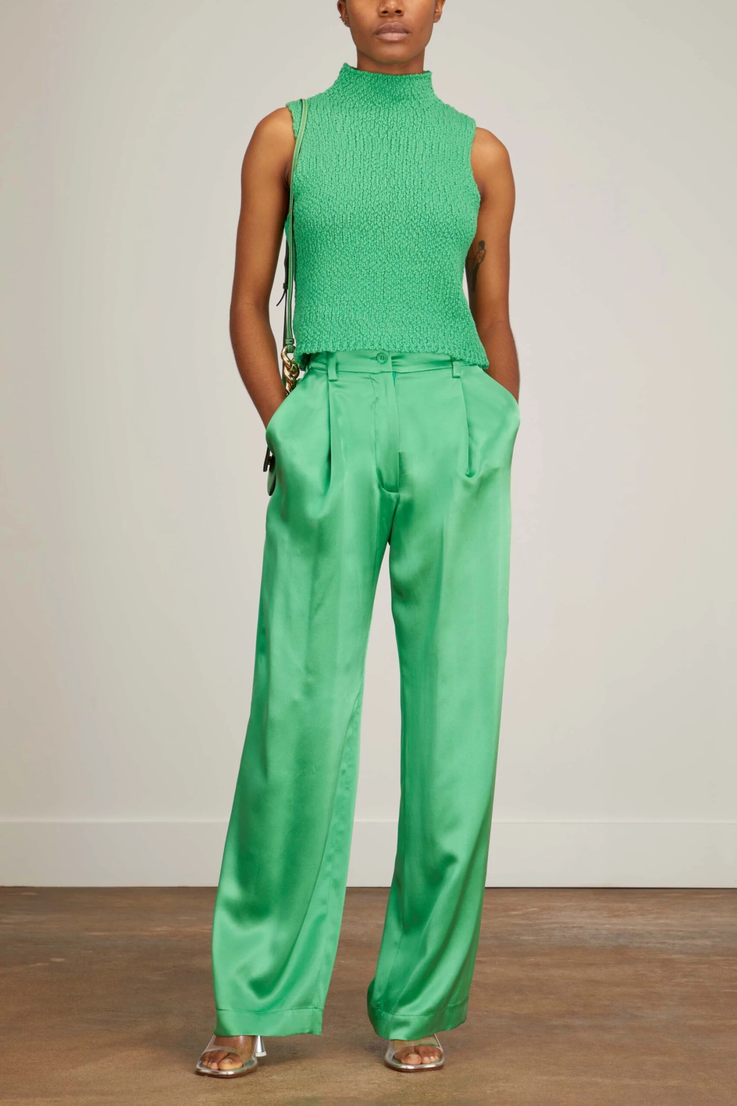 The Sablyn Wide Leg Pant are crafted in their signature silk. You’ll love the high rise and wide leg of these silk pants with front pleating. Wear yours with a matching blouse and heels.